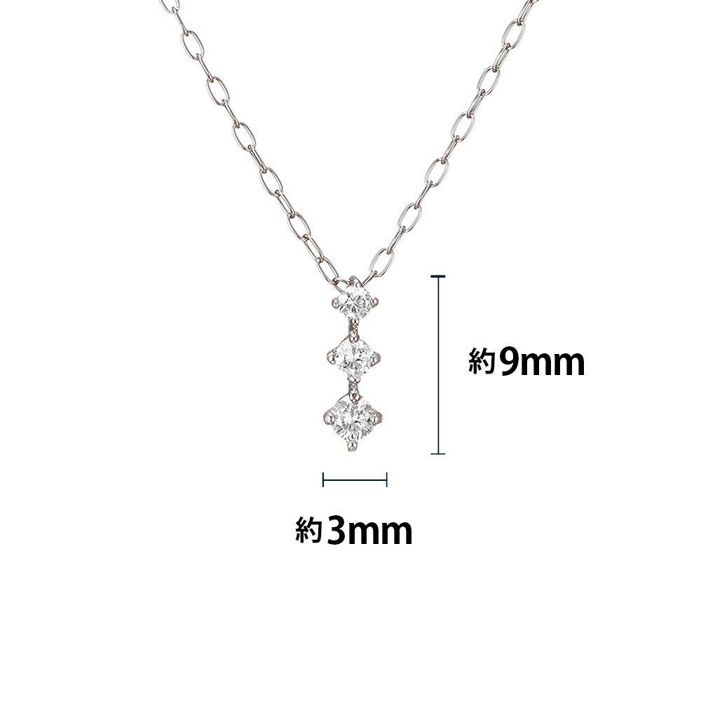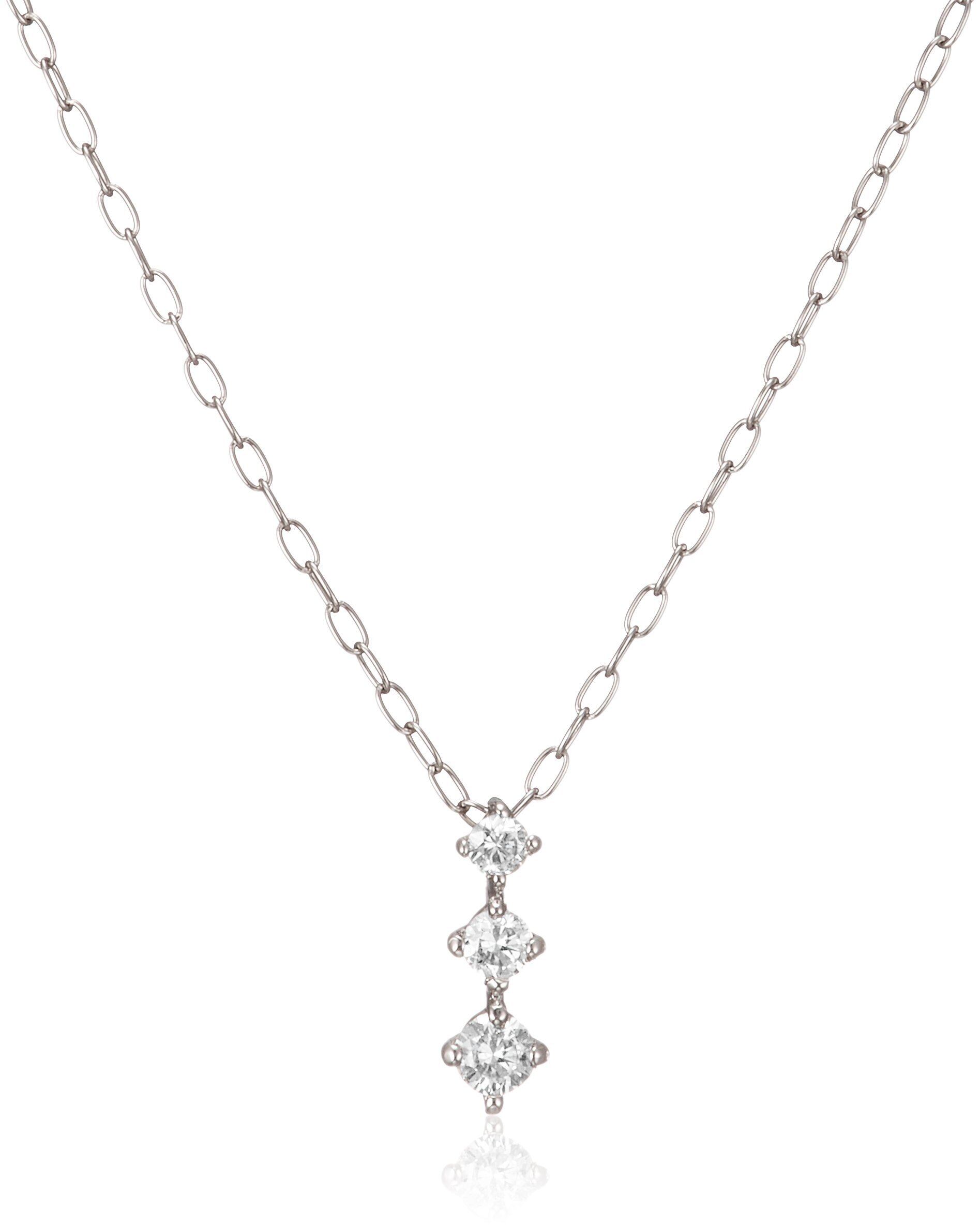 シンプルで定番のトリロジーダイヤネックレス。プラチナの上品な色合いにキラリと輝くダイヤモンドで日常を華やかに彩ります。フォーマルな場面でもご使用できる素敵なアイテムです