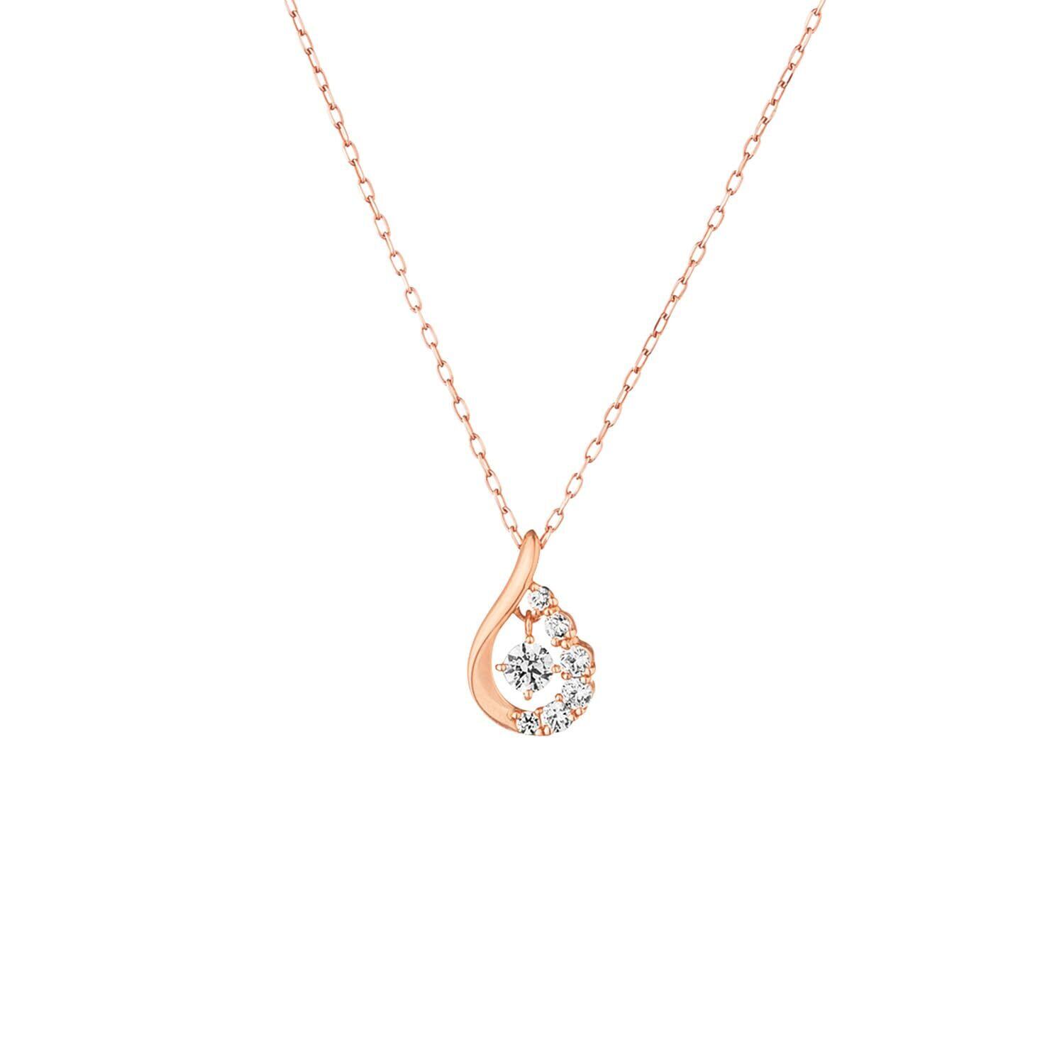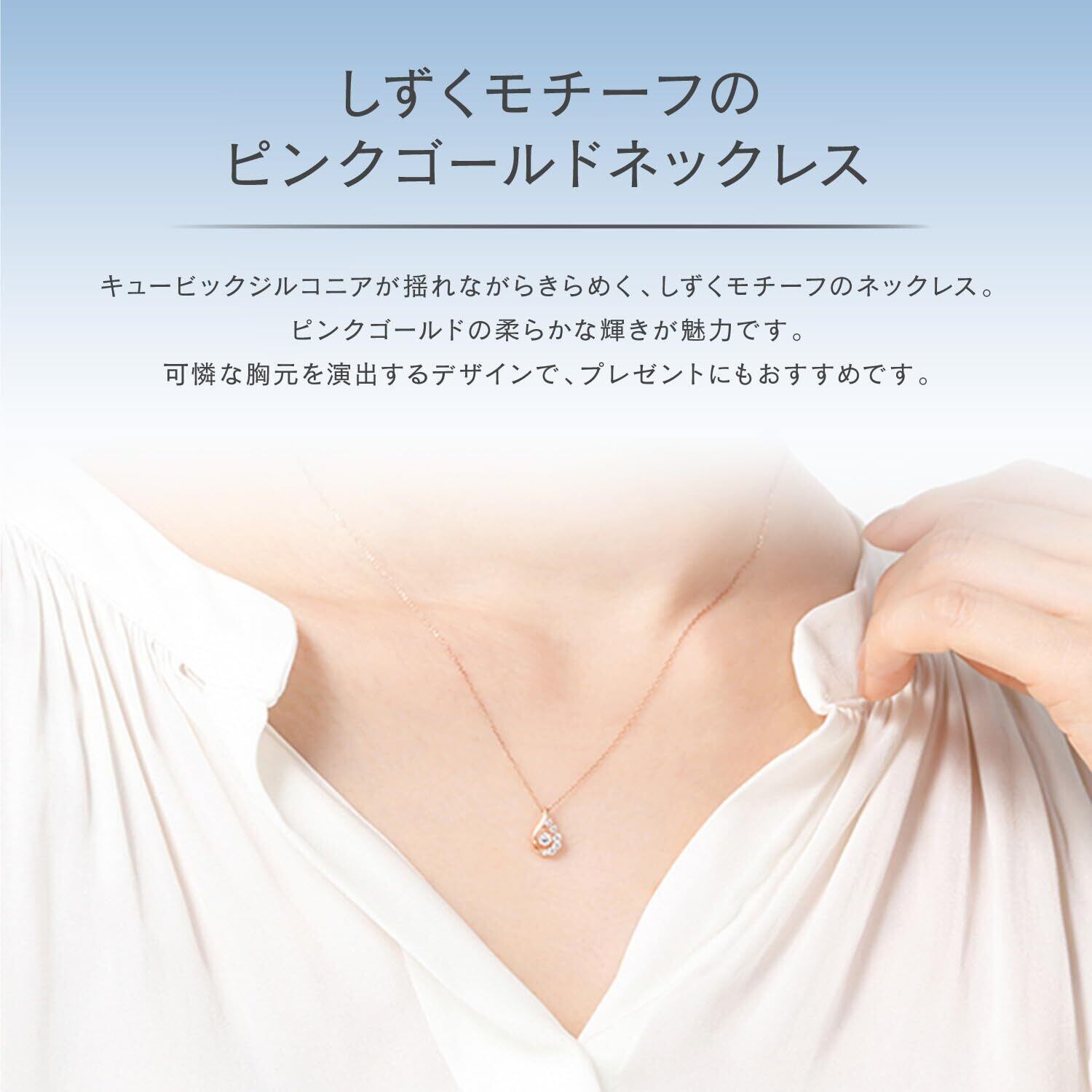 キュービックジルコニアが揺れながらきらめく、しずくモチーフのネックレス。ピンクゴールドの柔らかな輝きが、より女性らしさを引き立てます。可憐な胸元を演出するデザインで、プレゼントにもおすすめです。