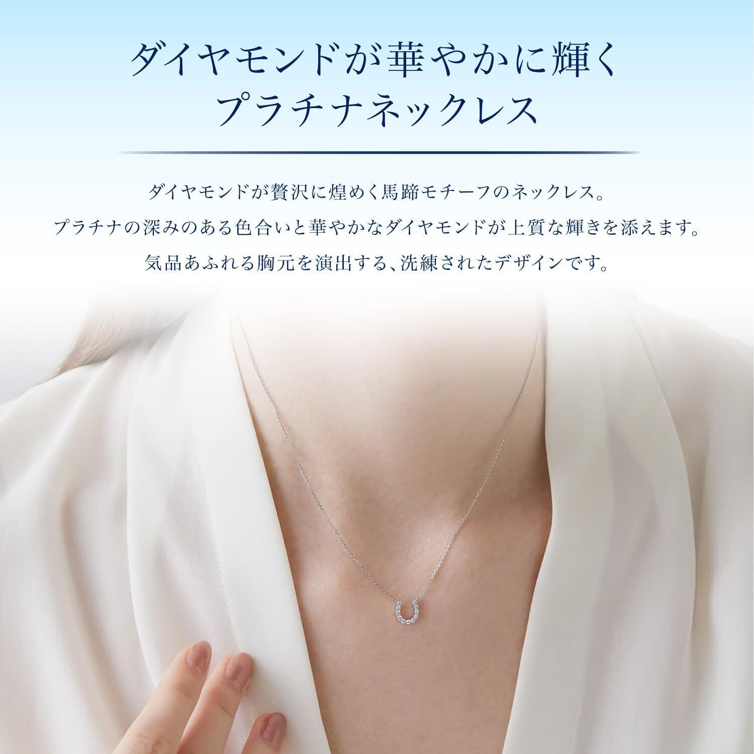 ダイヤモンドが贅沢にきらめく、馬蹄モチーフのネックレス。プラチナの深みのある輝きが上質感を添えます。気品ある胸元を演出するデザインです。