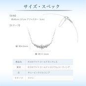 胸元に沿ってキュービックジルコニアが煌めく上品な印象のネックレス。ホワイトゴールドの凜とした輝きが女性らしさを引き立てます。シンプルながらも洗練された魅力を添えるデザインです。