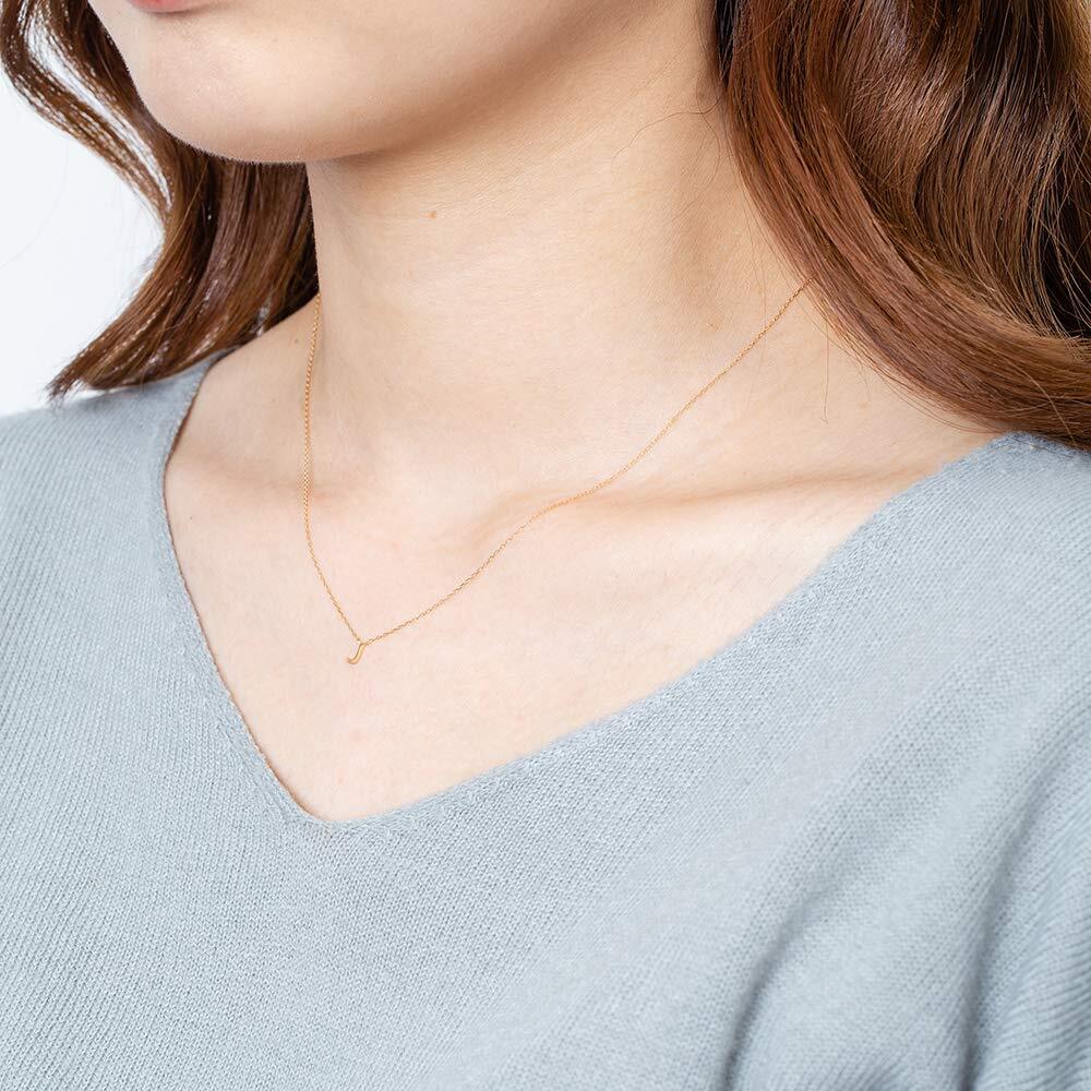 イエローゴールドが輝くイニシャルネックレスは、アレンジもしやすくコーディネートのアクセントに。