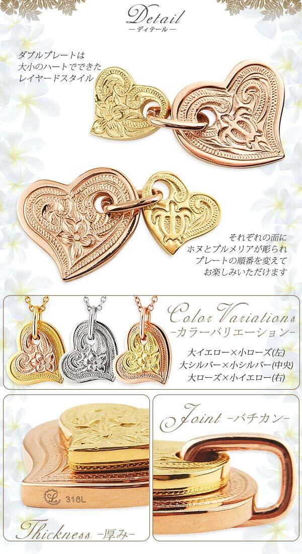 ハワイアンジュエリー ネックレス サージカルステンレス ハート プルメリア ホヌ ウミガメ スクロール ローズゴールド イエローゴールド あずきチェーン45cm