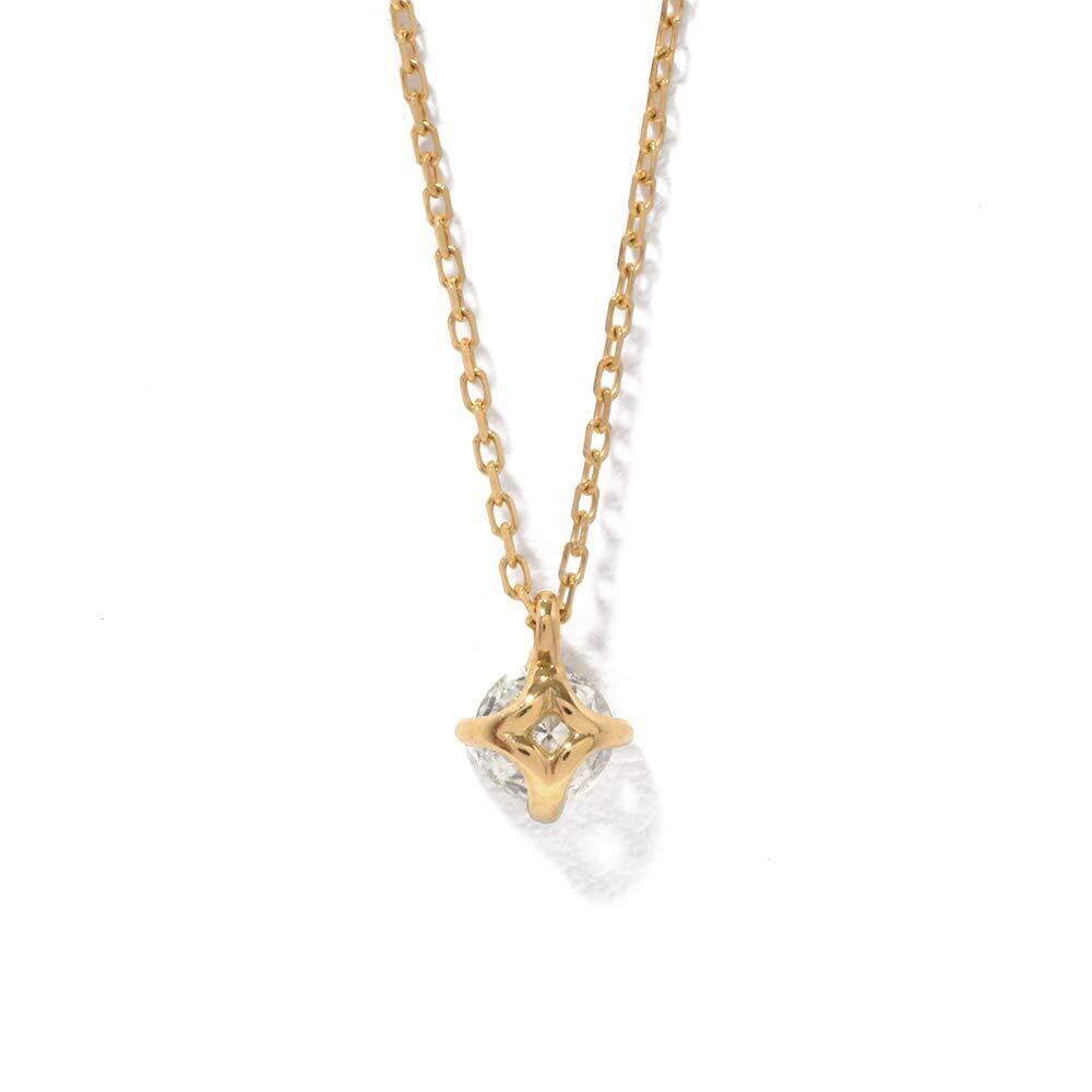 ダイヤモンドがきらめくK18イエローゴールドのネックレス。