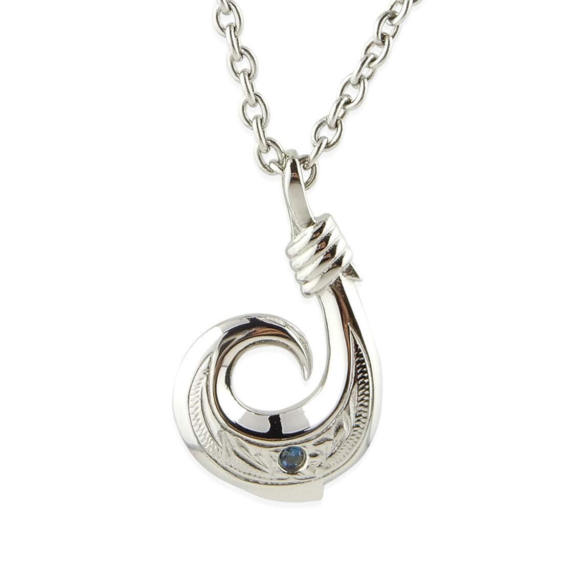 [Aloha lokahi] ハワイアンジュエリー ネックレス ペンダント アクセサリー サージカルステンレス ハート 天然サファイア フィッシュフック 釣り針 プルメリア スクロール ステンレスシルバー あずきチェーン