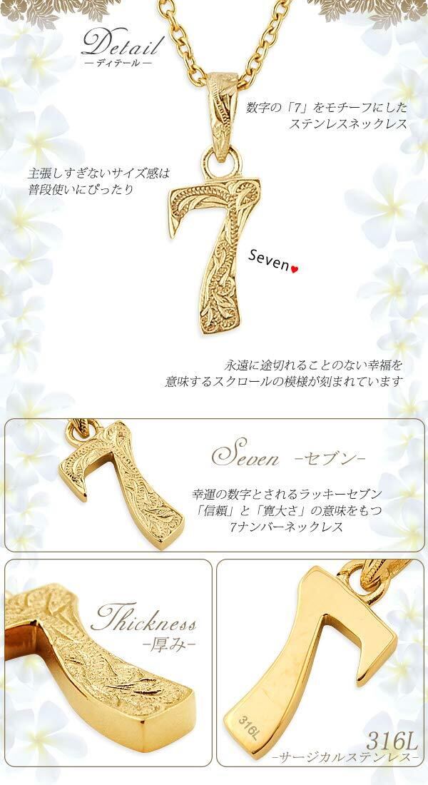 【2022最新】[Aloha lokahi] ハワイアンジュエリー ネックレス サージカルステンレス ナンバーネックレス 幸運の数字 ナンバー 7 セブン Seven ステンレス ペンダント ラッキーセブン イエローゴールド スクロール あずきチェーン アクセサリー | BOSSO