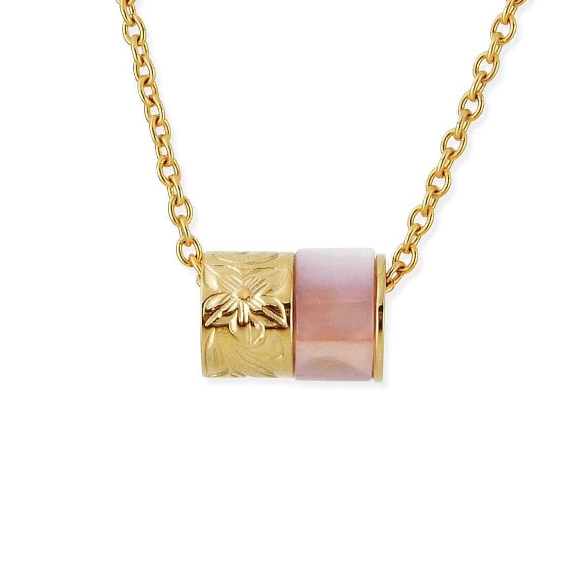 【特価商品】[Aloha lokahi] ハワイアンジュエリー ネックレス ペンダント アクセサリー サージカルステンレス イエローゴールド ピンクシェル スクロール チューブ リング シェル あずきチェーン | BOSSO