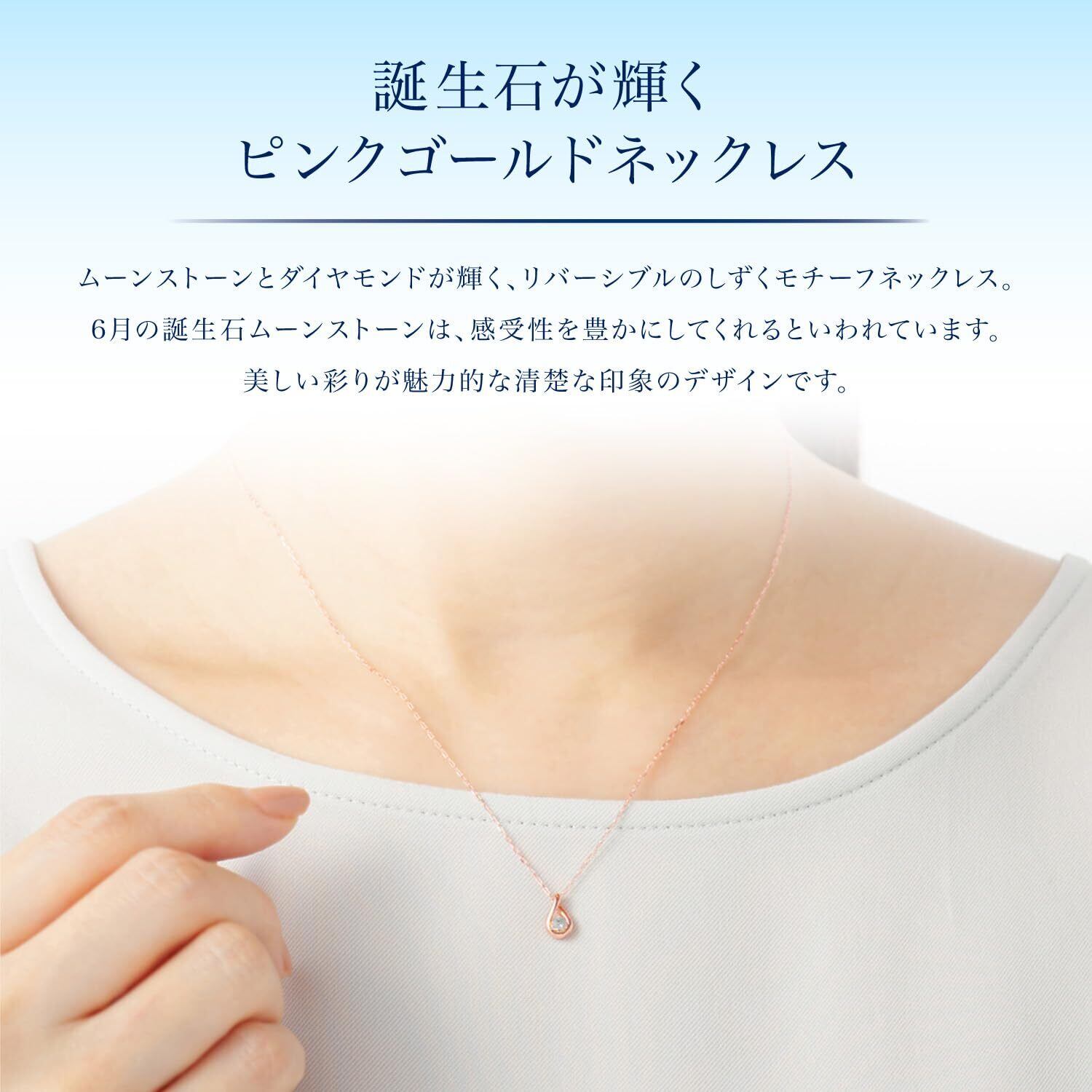 ムーンストーンとダイヤモンドをあしらった、リバーシブルのピンクゴールドネックレス。清楚な女性らしさを引き立てる、しずくモチーフのデザインです。6月の誕生石であるムーンストーンは、感受性を豊かにし、女性らしさを引き立てるといわれ、美しい彩りが魅力です。2wayで楽しめる、特別感溢れる一品です。
