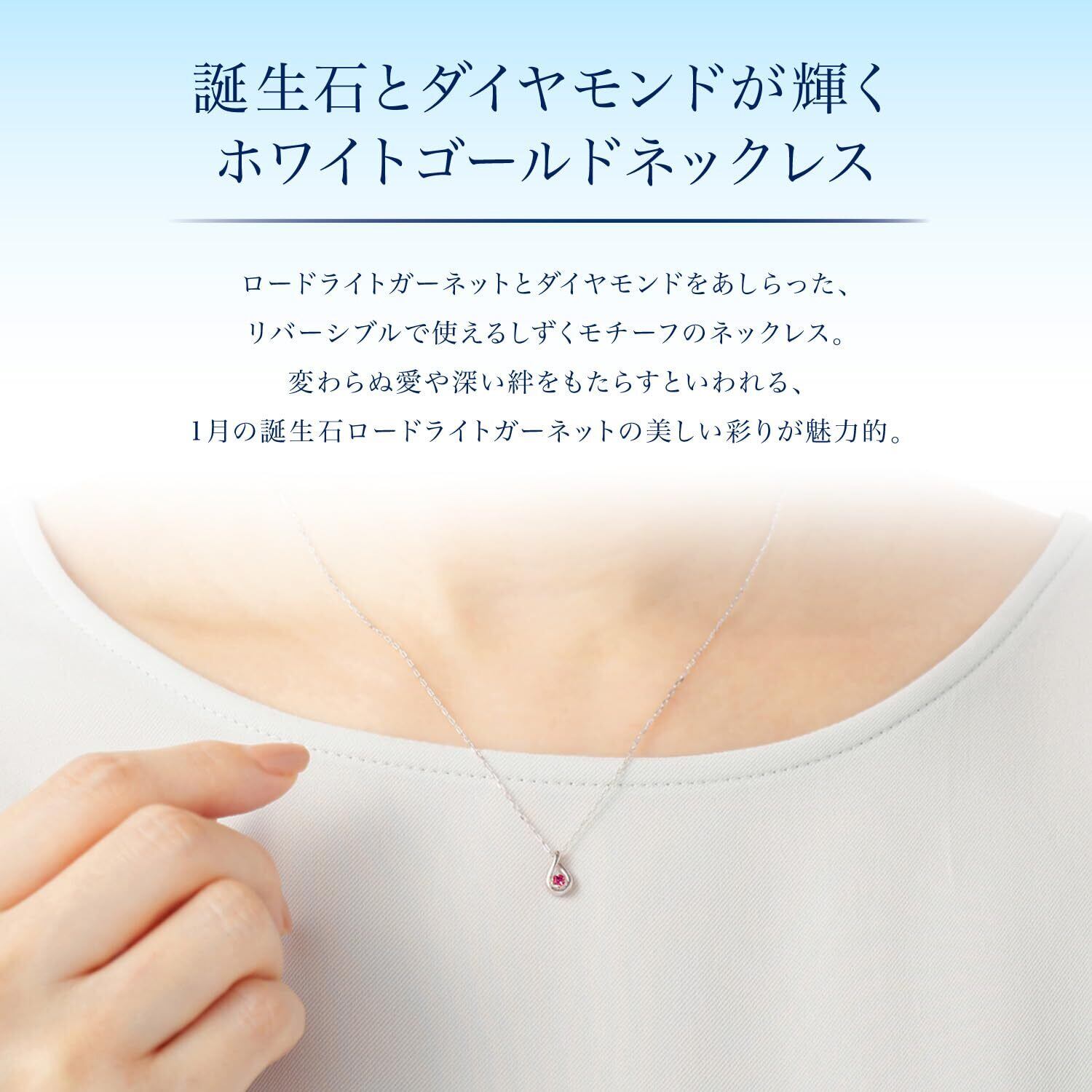 ロードライトガーネットとダイヤモンドをあしらった、リバーシブルのホワイトゴールドネックレス。清楚な女性らしさを引き立てる、しずくモチーフのデザインです。1月の誕生石であるロードライトガーネットは、変わらぬ愛や深い絆をもたらすといわれ、美しい彩りが魅力です。2wayで楽しめる、特別感溢れる一品です。