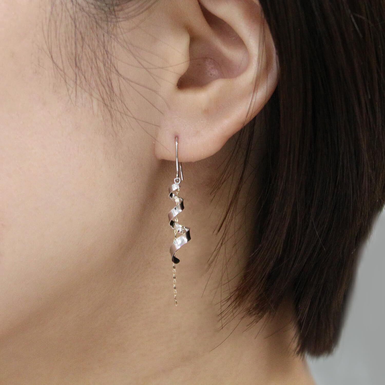 飽きのこないジュエリーの定番色! ホワイトゴールド上品で洗練されたデザインピアスは、ご自分へのご褒美ジュエリーや大切な人へのギフトにぴったり