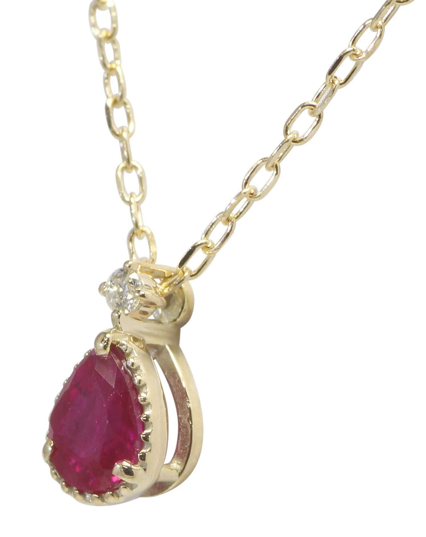 [キャンディ] Candy K10イエローゴールド ミルグレイン3mm×4mmペアシェイプネックレス ルビー gK10-3-4psmipn