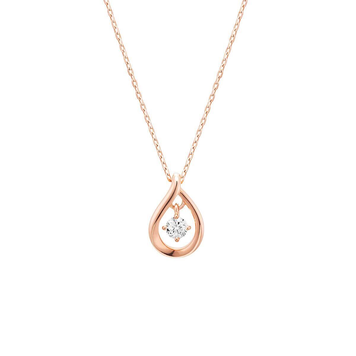 人気のしずくモチーフにダイヤモンドを添えた、上品なネックレス。動く度にダイヤモンドが揺れて輝きを放ちます。女性らしさを引き立てるピンクゴールドは、プレゼントにもおすすめです。