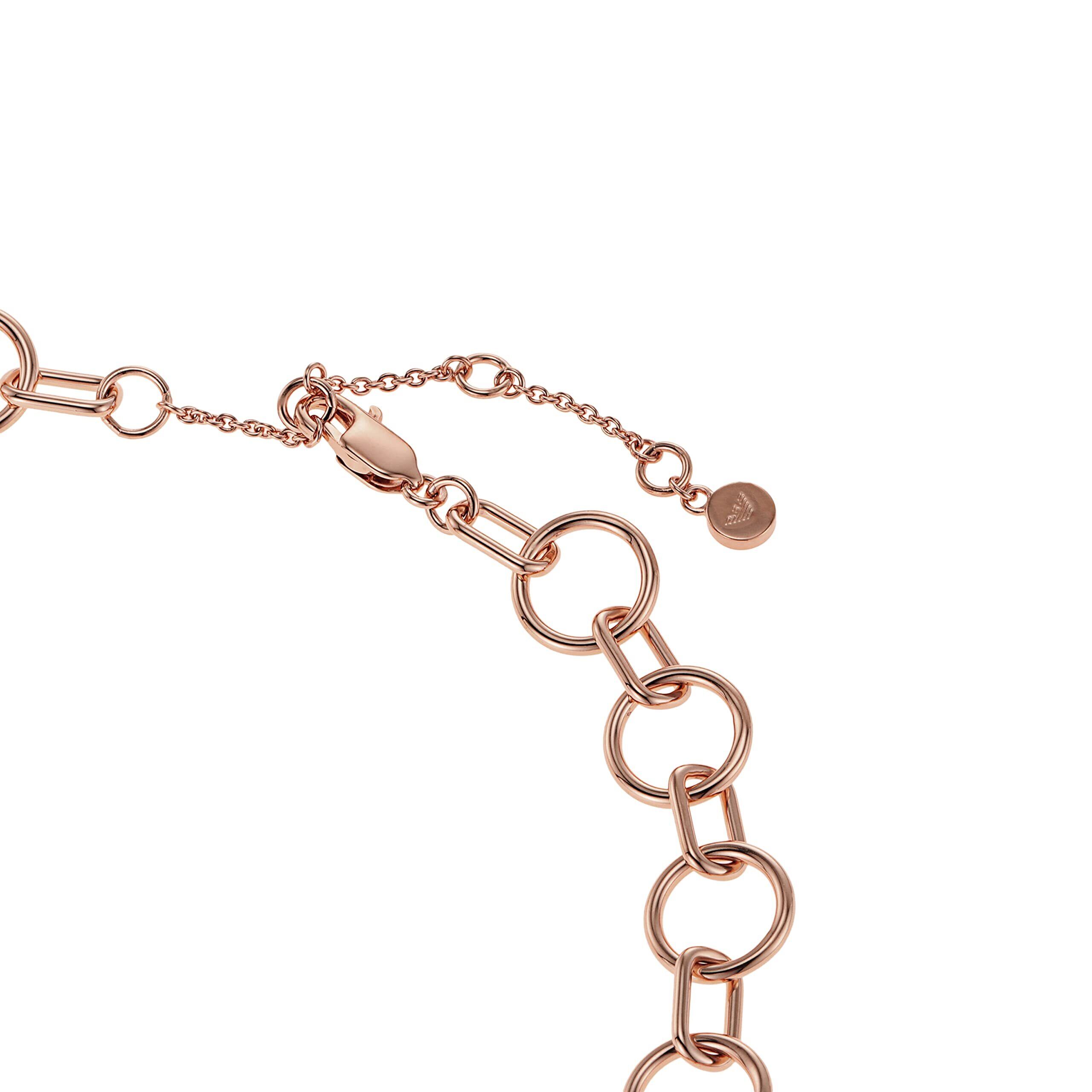 クラシカルなチェーンにイーグルロゴのパーツを連ねたスターリングシルバー製ネックレス。ローズゴールドトーンにグリッツが映える。