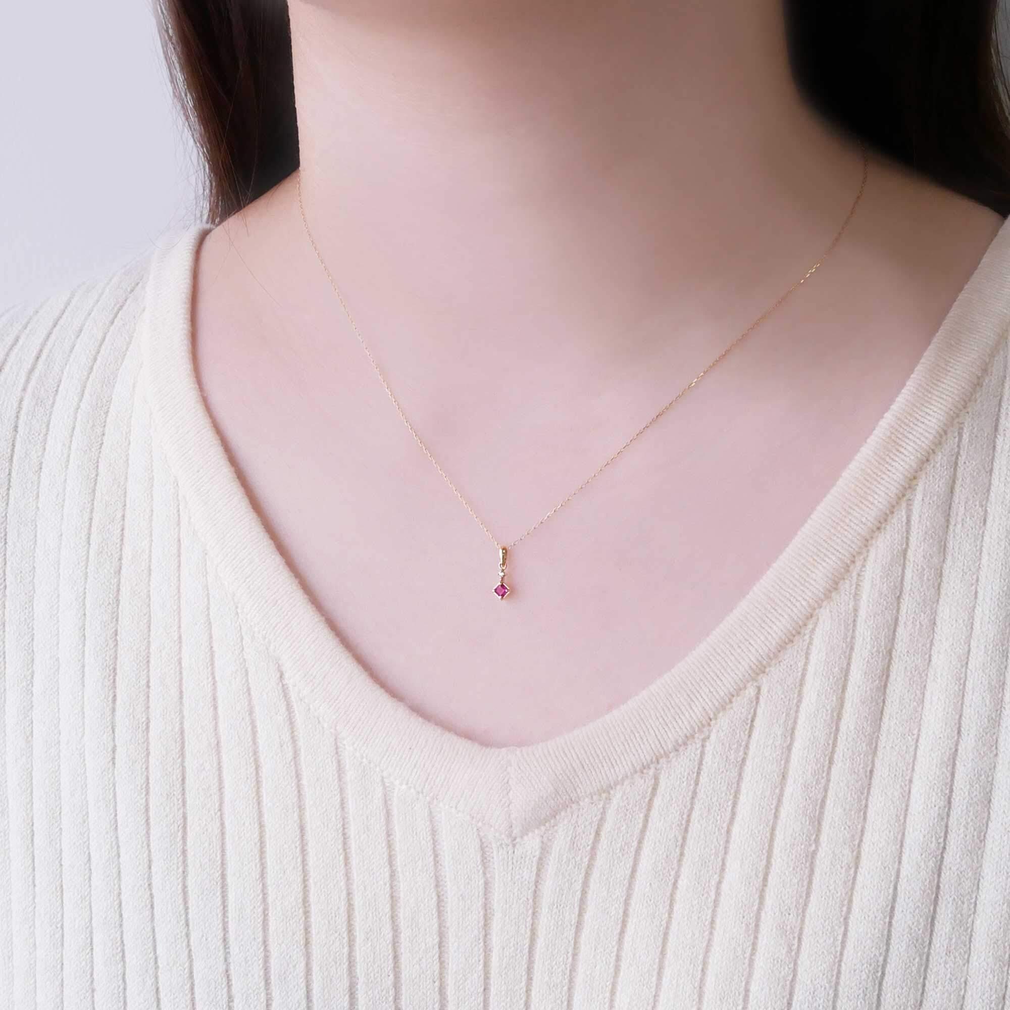 すっきりとしたバチカンの下にきらめくスクエアシェイプのルビーが印象的 。 勝利を意味するルビーはアクティブなエネルギーに溢れ、災難から持ち主を守り幸福をもたらす石と言われています 。大切な人へのギフトとしてもおすすめ。