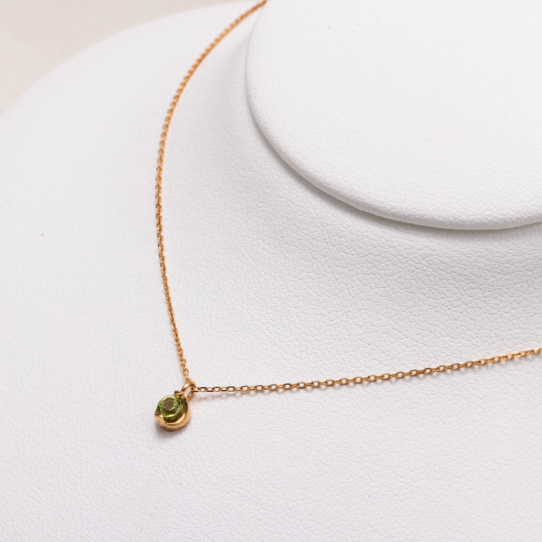 爽やかなグリーンがきらめく、ペリドットの一粒ネックレス。