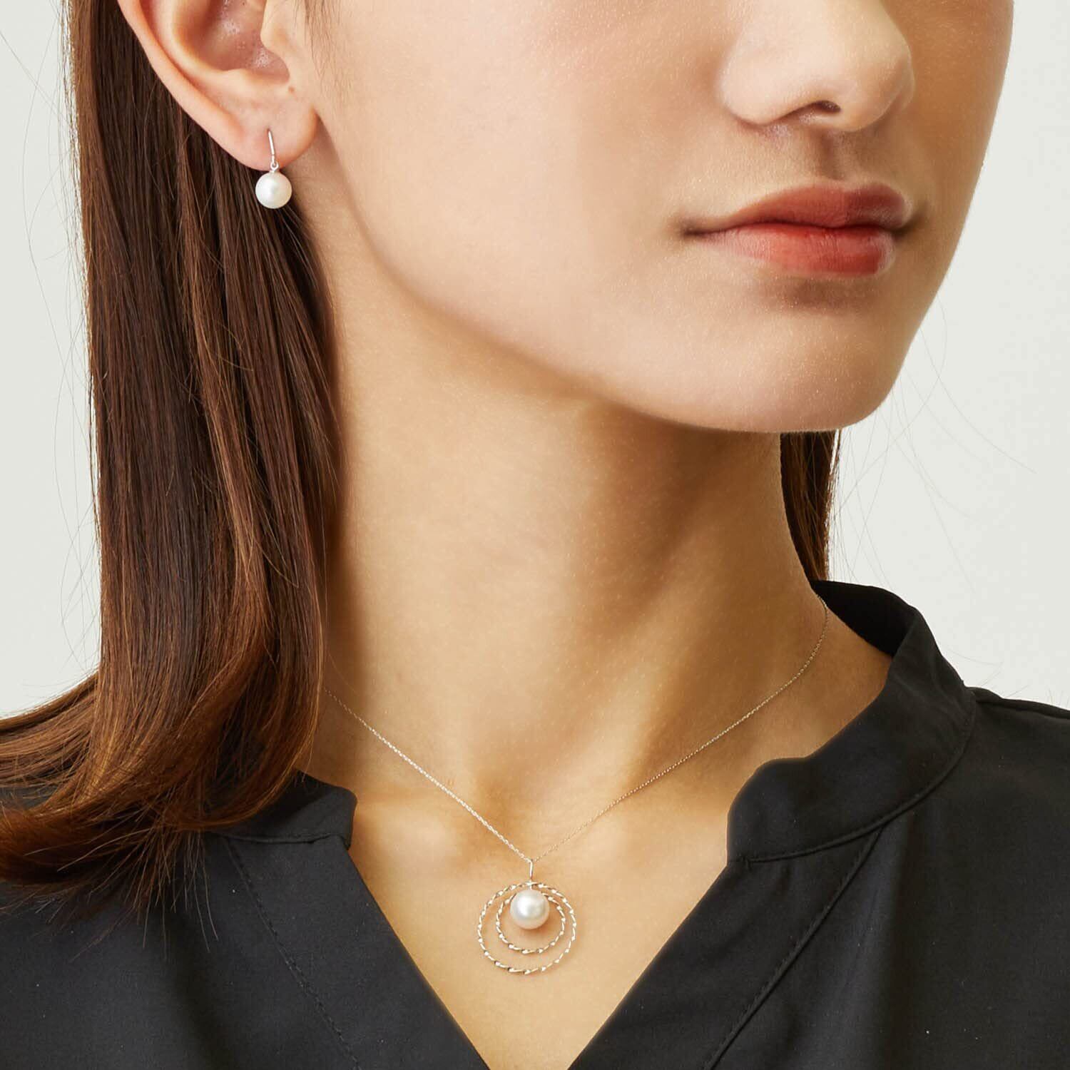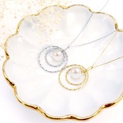 [ララクリスティー] ネックレス レディース あこや真珠 パール 一粒 ダブルサークル Pt900 プラチナ lp56-0007-pt