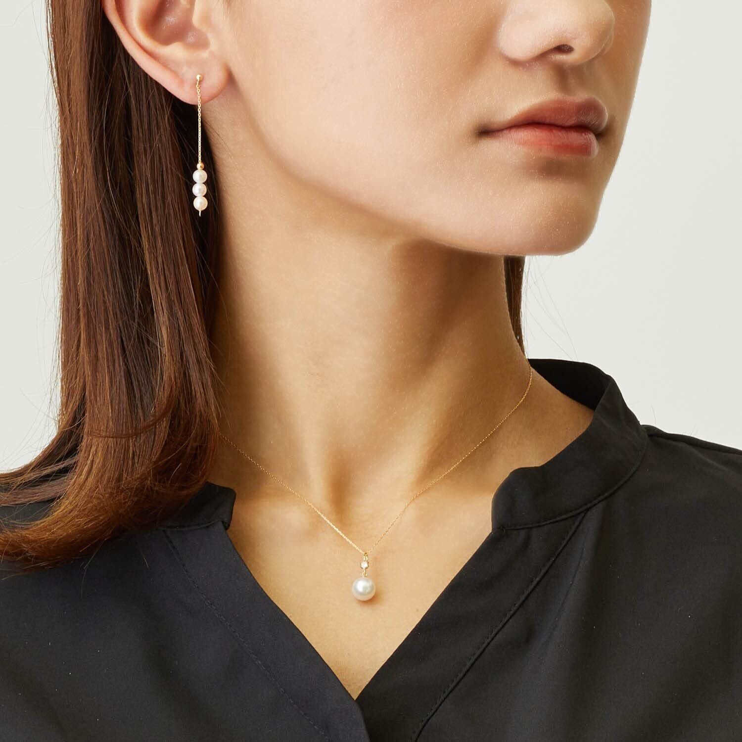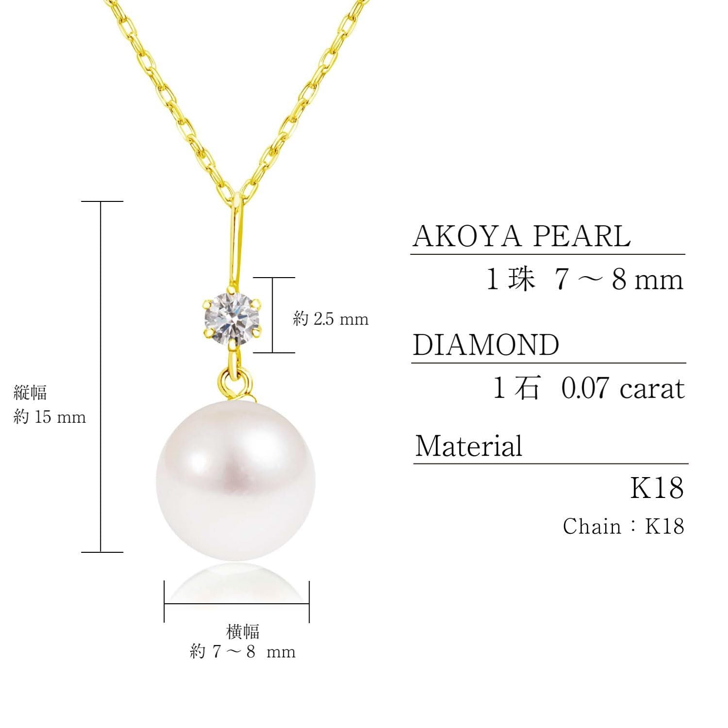 [ララクリスティー] ネックレス レディース あこや真珠 パール 一粒 ダイヤモンド 0.07ct K18 ゴールド lp56-0006-yg