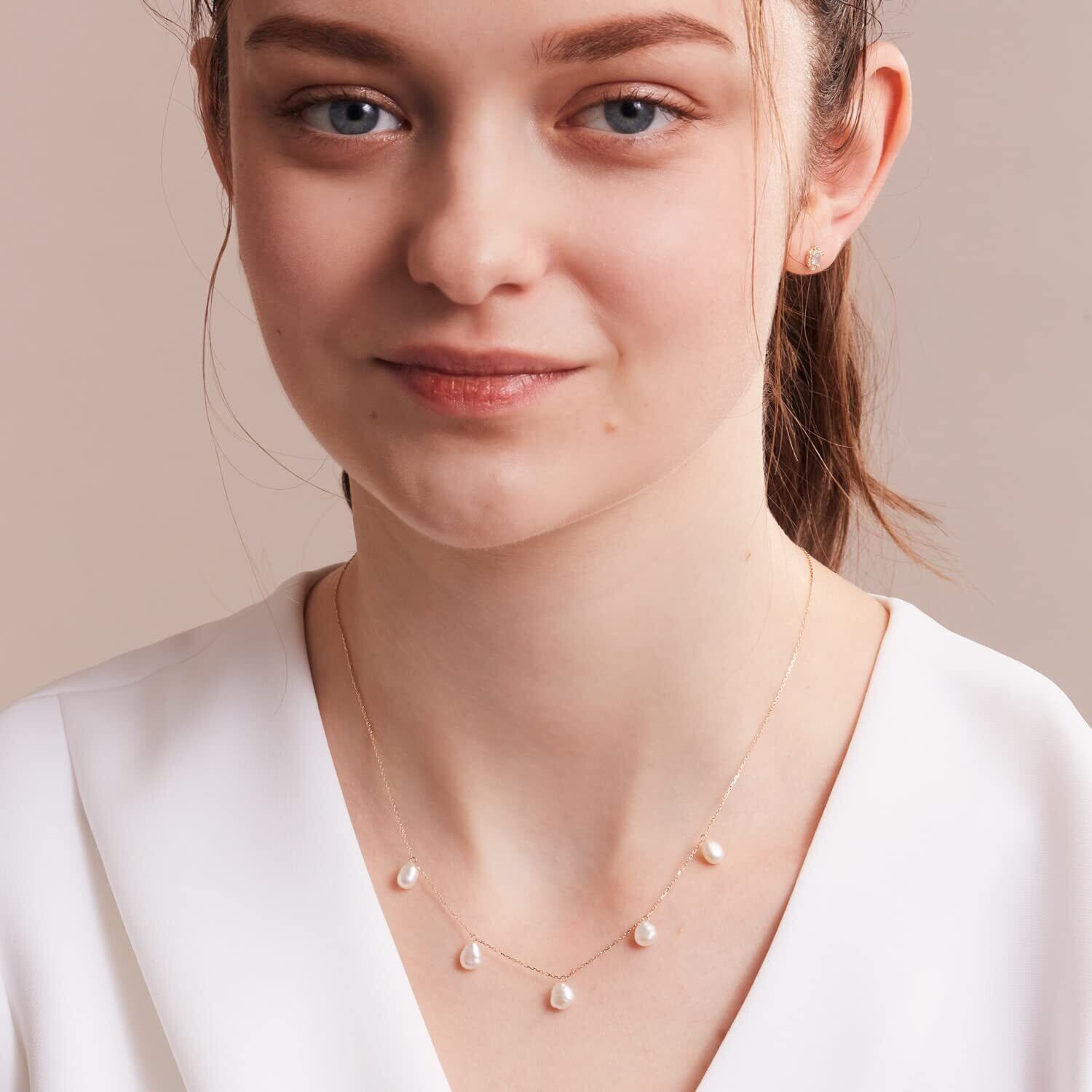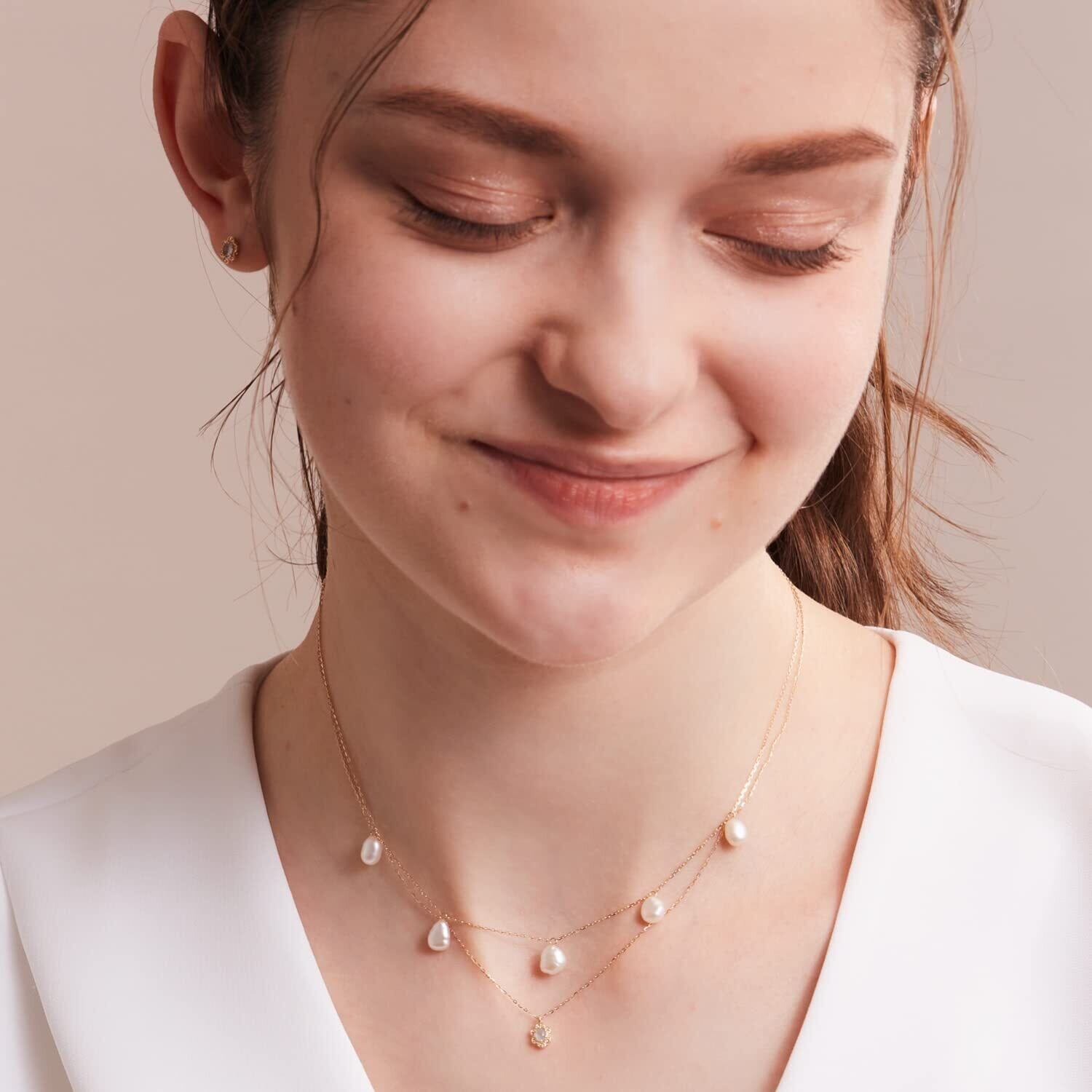レイヤードスタイルに華やかさと個性を添える淡水パールのステーションネックレス。バロックシェイプの淡水パールが、顔周りに柔らかいニュアンスを添えます。コーディネートの幅を広げる、45cmまで調節が可能なスライドボール仕様。レイヤードはもちろん、1本でサラリと着けてもスタイルのポイントになるネックレスです。※天然素材を使用しており、サイズや色、風合い、濃淡、形状は一つ一つ異なります。また、内包物や若干の傷、クラックなどがある場合もございますが、デザインとして許容しております。予めご了承くださいませ。