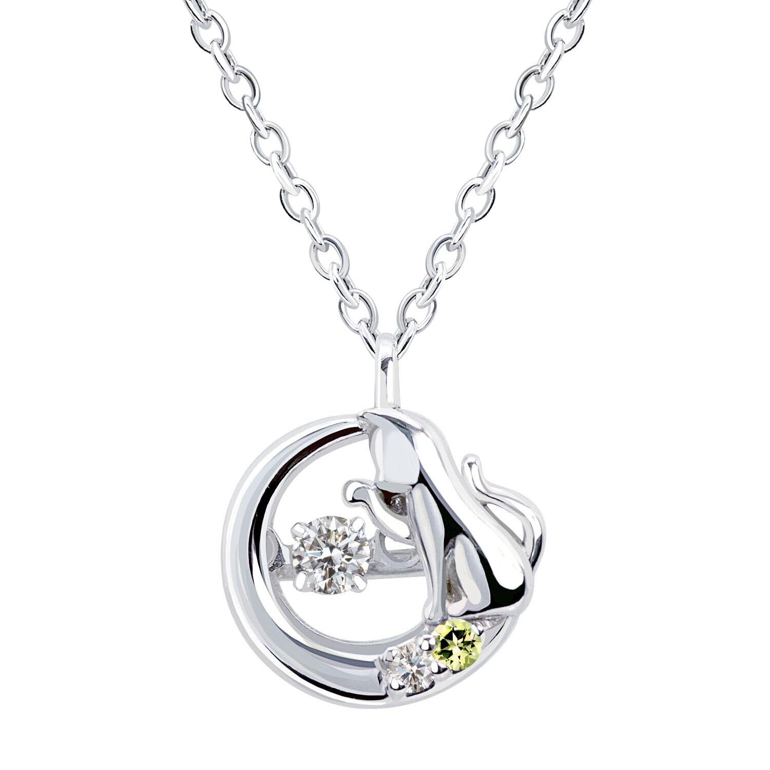[シアーズ] ネックレス 猫 ダンシングストーン 8月誕生石 ペリドット sp10-0002-08