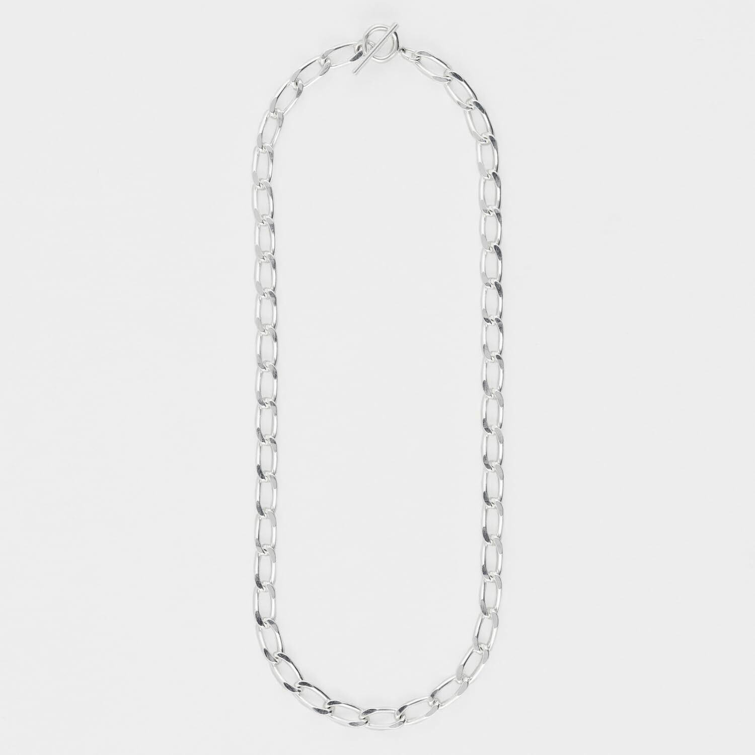 程よいボリューム感があり、スタイリングのアクセントにぴったりのチェーンネックレス。柔らかいニュアンスに仕上げたオリジナルのマンテルパーツは、前に、後ろに、横に、様々な向きで着けていただけます。潔く1本で着けるスタイルはもちろん、地金だけでまとめたレイヤードスタイルなど、様々なコーディネートをお楽しみください。オススメコーディネート:30223114014。