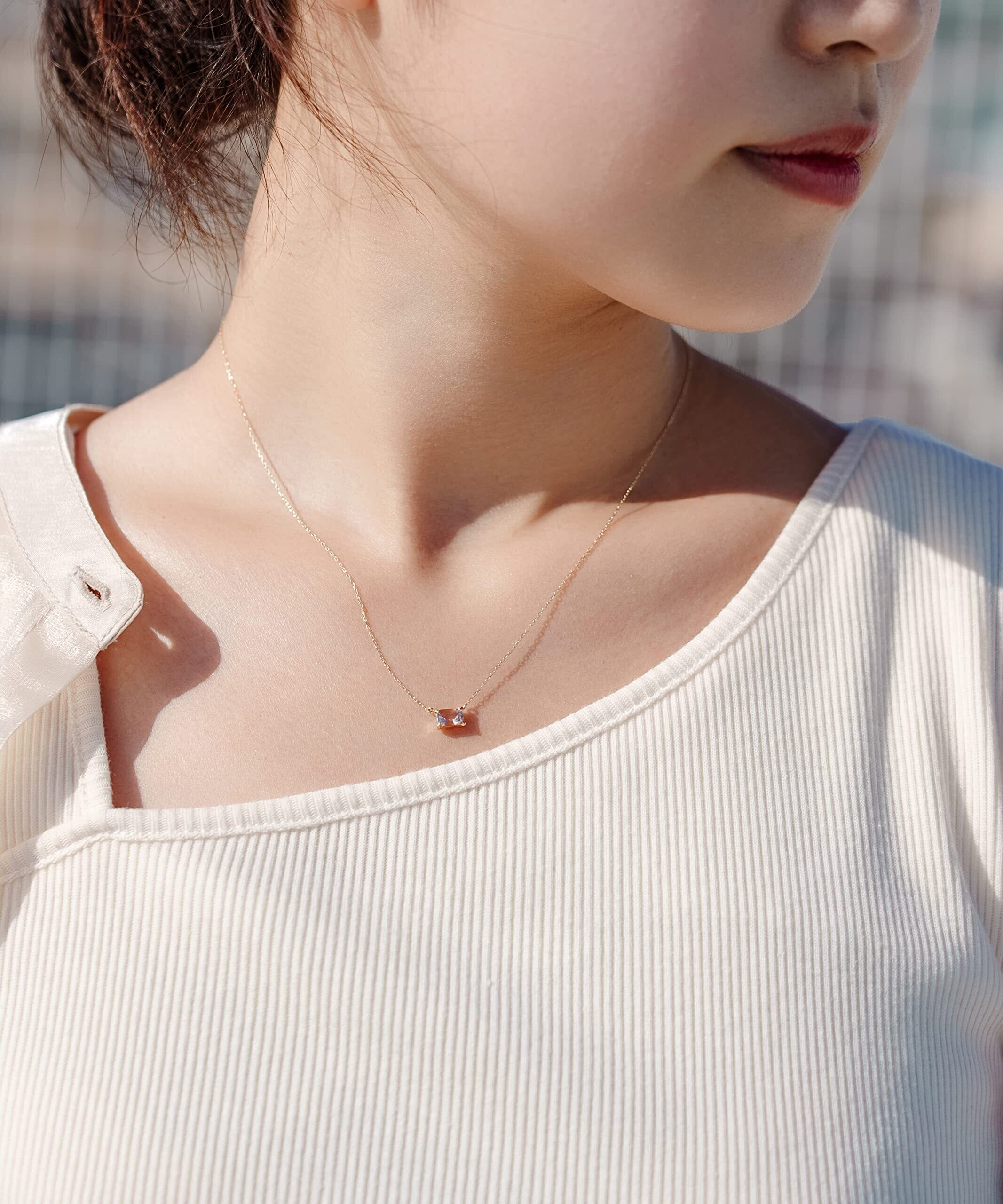 誕生石をスタイリッシュに身につける主張しすぎない大きさで天然石を楽しめます。 大人っぽい長方形のカットでスタイリッシュに身に着けられるネックレスです
