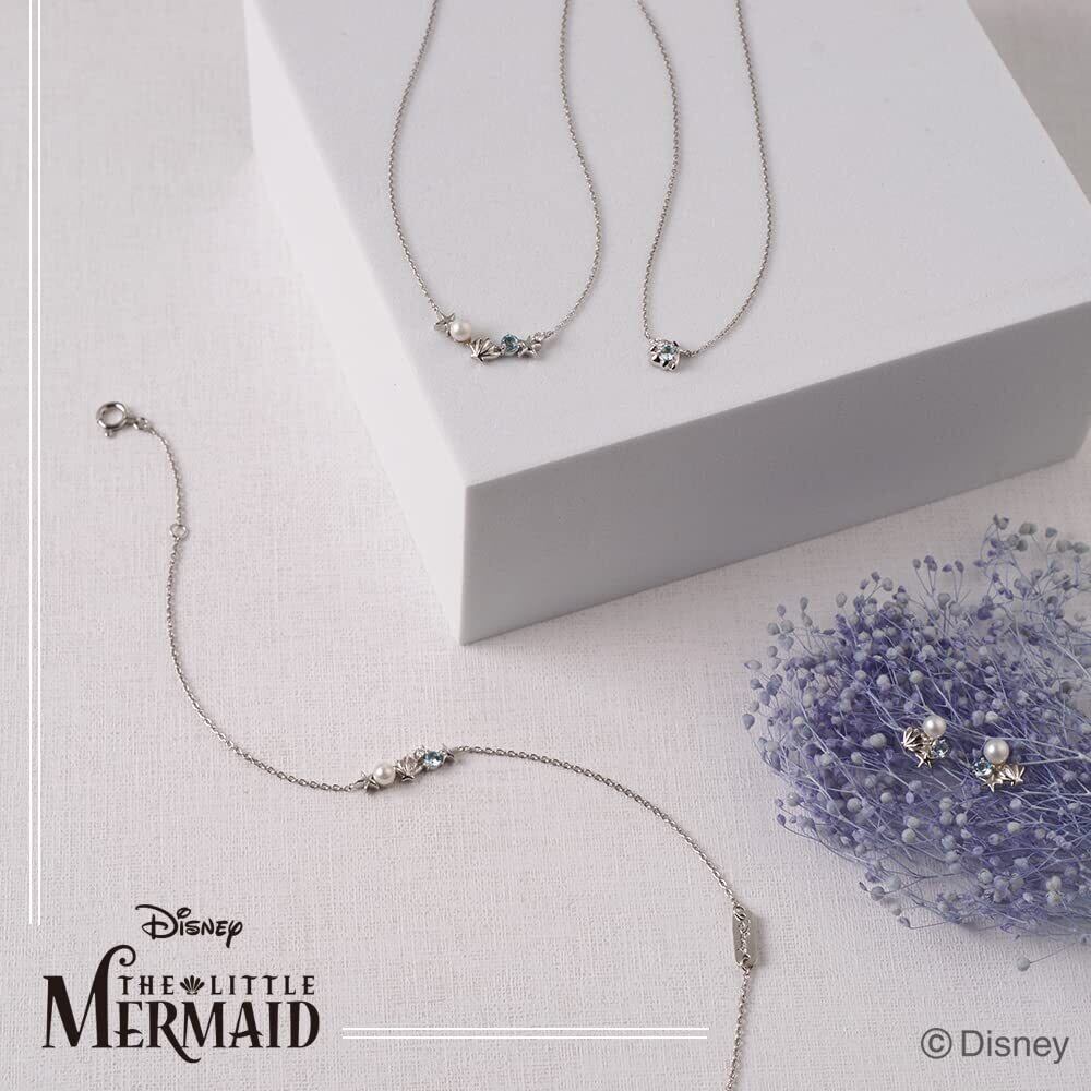 [ディズニー] ペンダント ネックレス リトル・マーメイド プリンセス 10金 ホワイトゴールド 3月 ダイヤモンド アクアマリン 淡水パール ヒトデ 貝殻 海 opcds20267