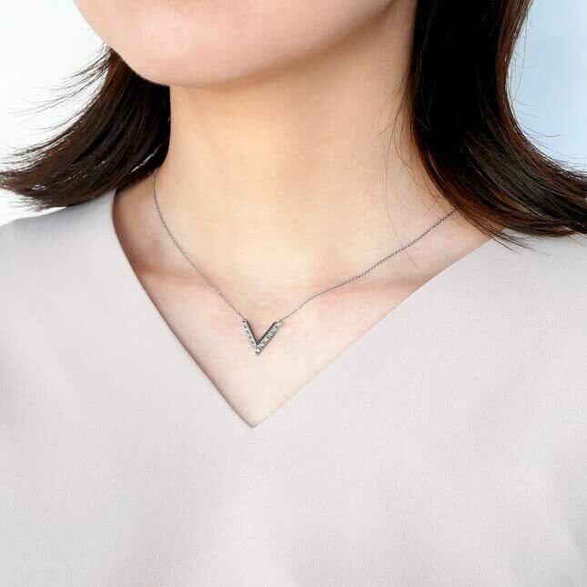 ダイヤモンドの煌めきとプラチナのストレートなラインが、モダンな雰囲気のネックレス。