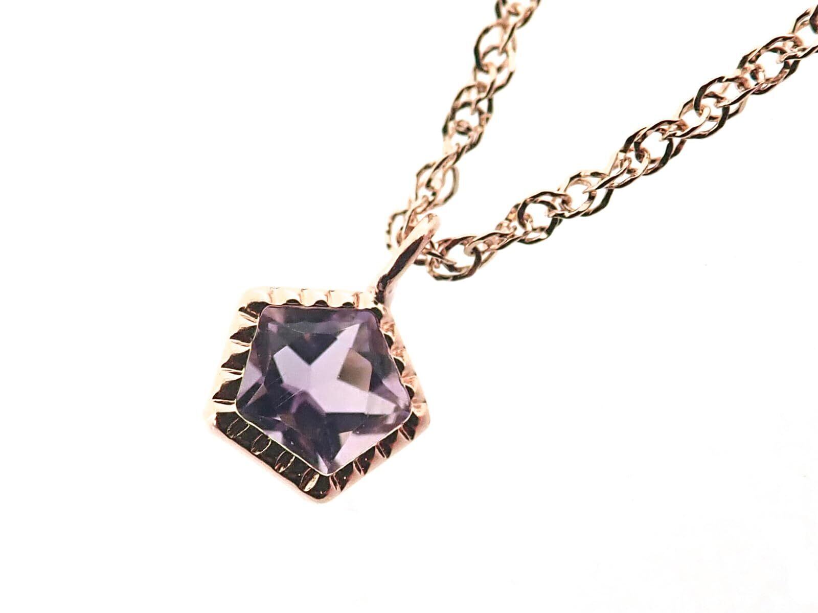 [キャーロ ディ ディアマンテ] K10ピンクゴールド アメジスト ペンタゴン ペンダントネックレス CHS1001