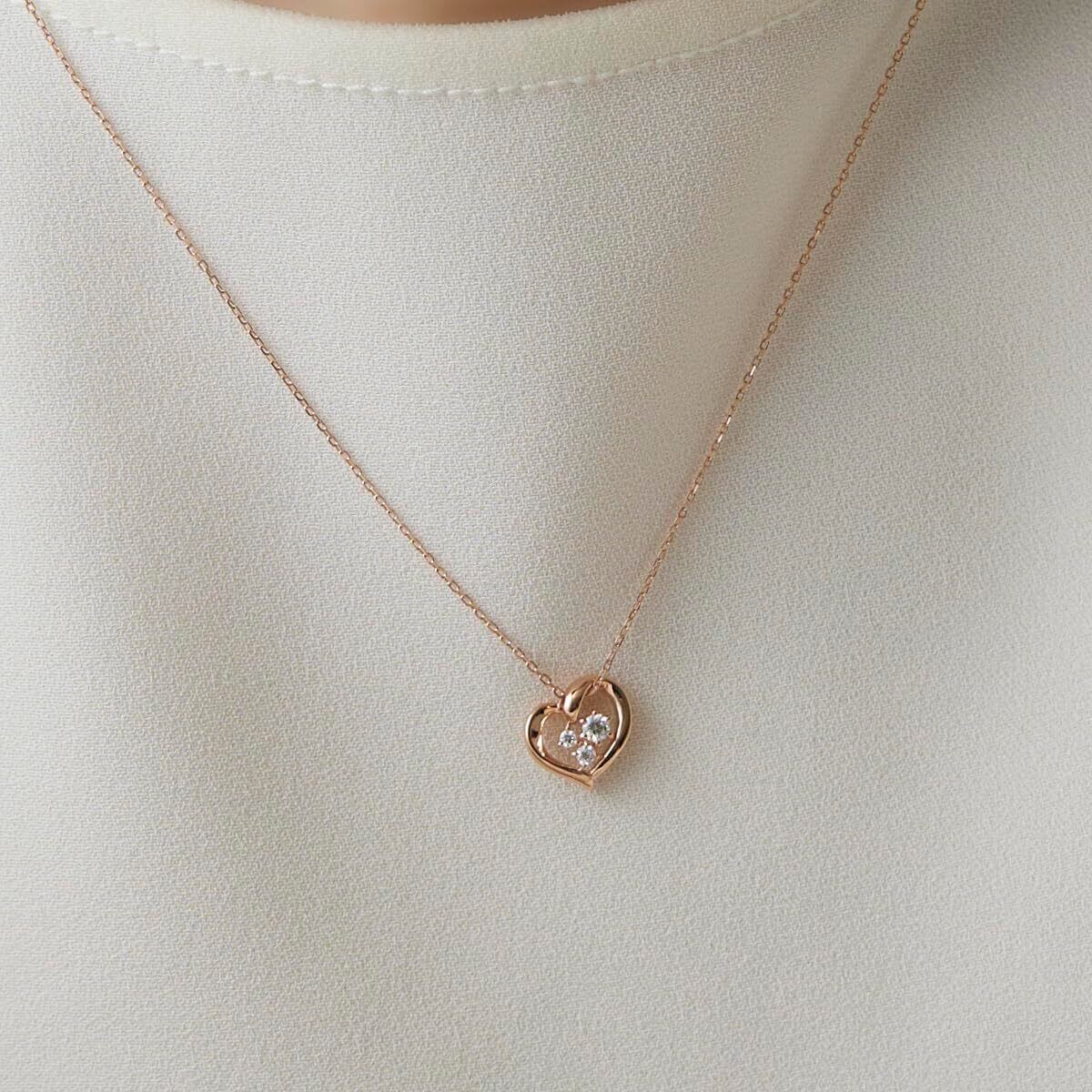 虹色の光りと優れた耐久性をもつ、新世代のエシカルなジェムストーン「モアサナイト」が煌めくハートモチーフのネックレス。センターにぎゅっと寄せられたモアサナイトが華やかで、見るたびに心弾むデザインです。肌なじみのよいピンクゴールドコーティングの輝きも相まって、胸もとを可憐に愛らしく演出してくれるデザインは特別な方へのプレゼントとしてもおすすめです。