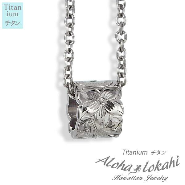 [アロハロカヒ] ハワイアンジュエリー ネックレス チタン リング カットアウト プルメリア スクロール チタン製チェーン付き 45cm