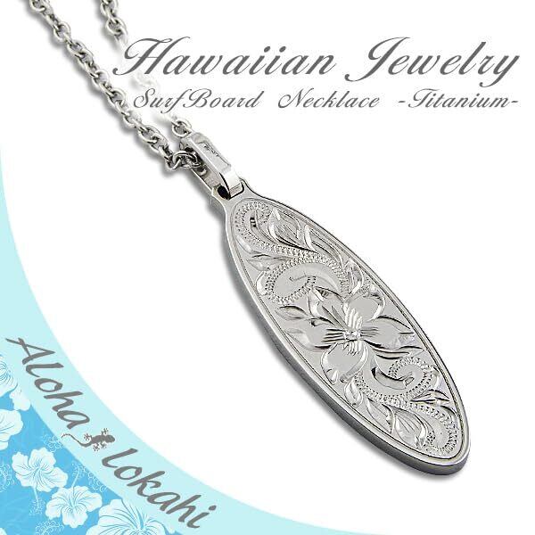[アロハロカヒ] ハワイアンジュエリー ネックレス チタン サーフボード プルメリア スクロール チタン製チェーン付き 45cm