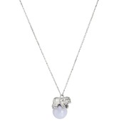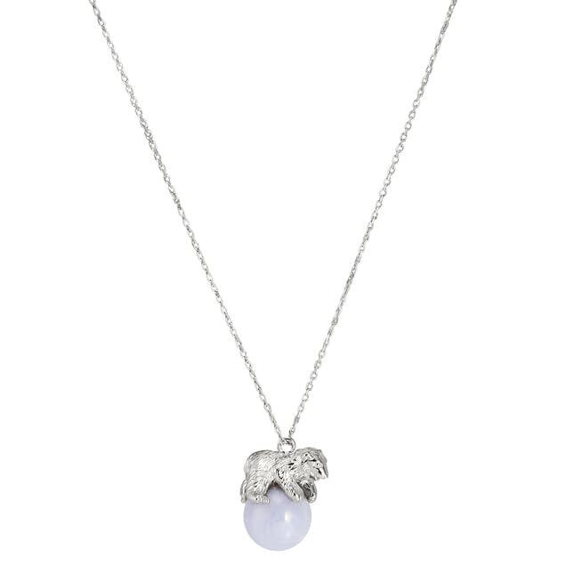 氷にたわむれて遊ぶかわいい子ぐまの様子を天然石ブルーレースアゲートをあしらって表現したネックレス。