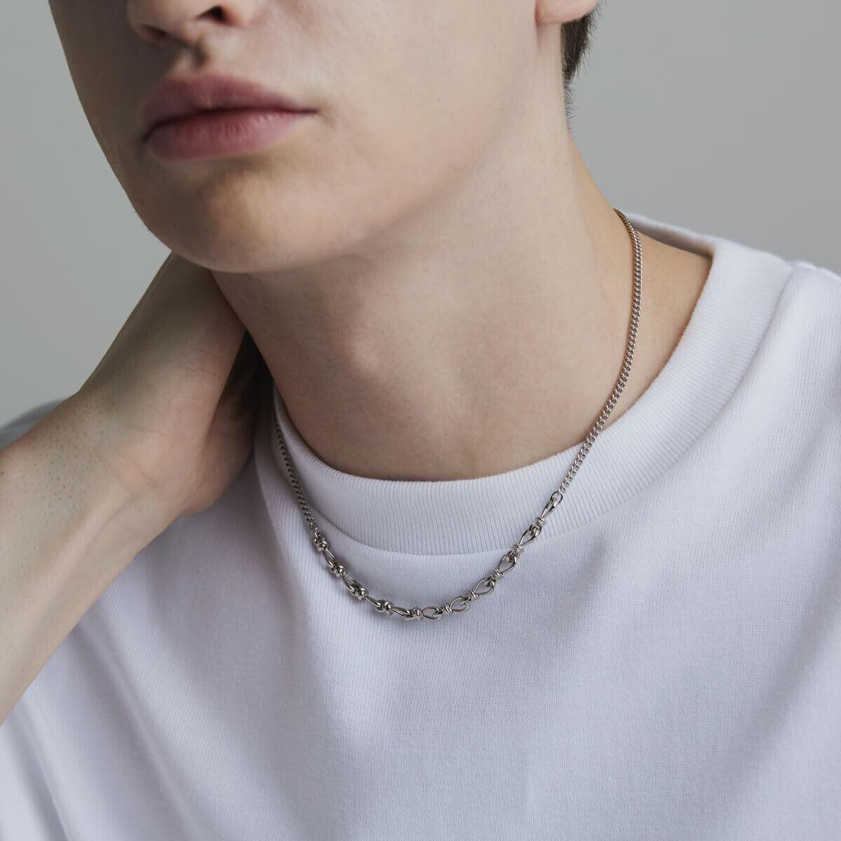いつまでも寄り添い続ける「結び」をイメージしたノットモチーフネックレス。独自の洗練されたフォルムがトレンド感をプラス。プラチナコーティングがクールな印象を与え、シンプルなチェーンと組み合わせることでデザイン性がありながらもコーディネートに溶け込みます。留め具は2段階調節なのでジェンダーレスに着用いただけます。パートナーとのシェアもおすすめです。