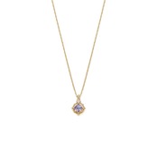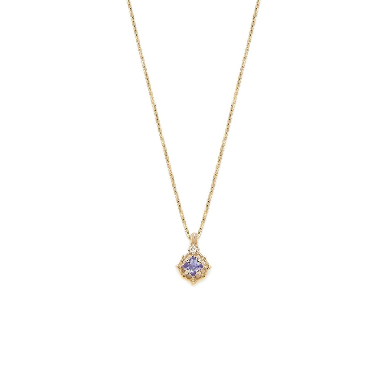 ヨーロッパで古くから愛される菫(すみれ)の芳香。清らかな香りが優しく広がる様子を菫色のタンザナイトを用いてデザインに落とし込んだネックレスです。繊細な透かし細工でプリンセスカットのタンザナイトを取り巻き、ダイヤモンドを添えて華やかに。タンザナイトの石座は側面から見ると二段腰になっており、横からの光を取り入れてきらきらと輝きます。ダイヤモンドの石座は地金の粒で取り囲み、クラシカルな雰囲気に。細部までこだわりを詰め込みました。※ネックレストップはK5、その他の部分はK10を使用しています。※天然石や天然素材を使用しているものは、サイズ・色味・風合いの違いや、若干の傷、内包物の有無などに個体差があります。予めご了承ください。