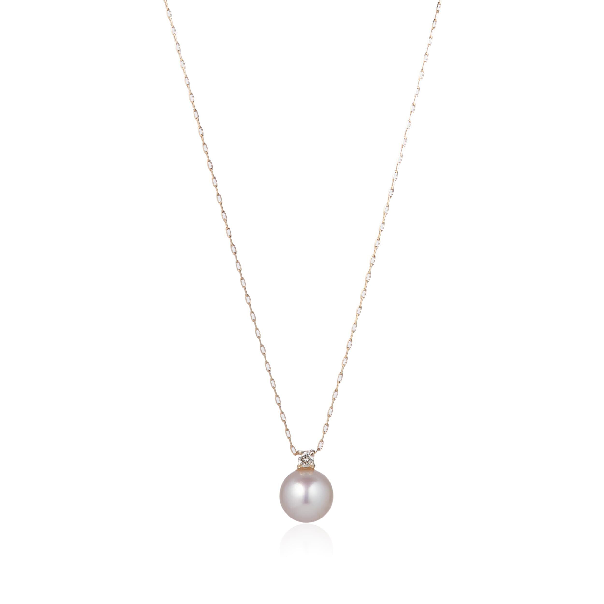どんなシーンにも合わせられて長く愛用できるパールとダイヤモンドの一粒ネックレス。パールの上品なつや感とダイヤモンドの煌めきはこれ以上ないほどの好相性。シンプルなフォルムは品質の良さを際立たせてくれます。