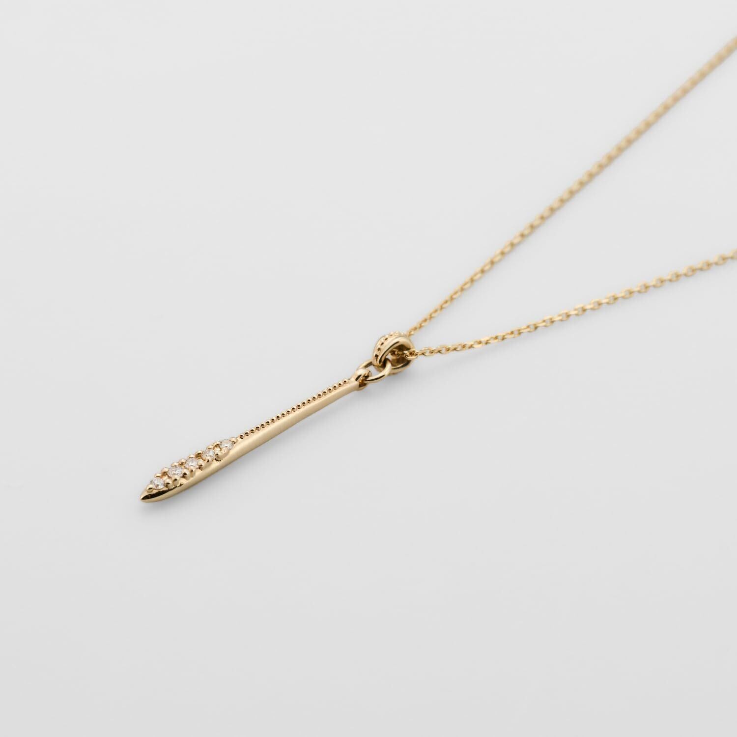 直線的ながら柔らかなフォルムに光り輝くメレダイヤモンド。月や星の光が静かに差し込むように、そっと胸元に輝きを添えてくれます。首筋とデコルテの女性特有の曲線を拾って鎖骨の隙間へと落ちるネックレスは、ちょっとしたポイントをおくことで身に着ける人の印象を大きく変えます。春夏は白いシャツで爽やかに、秋冬は濃色のニットに合わせてダイヤの輝きを楽しんでいただけます。※スライドボールは無理に引っ張ったりせず、ボールをつまんでチェーンをゆっくり真っすぐ引っ張るようにしてください。※天然石や天然素材を使用しているものは、サイズ・色味・風合いの違いや、若干の傷、内包物の有無などに個体差があります。予めご了承ください。