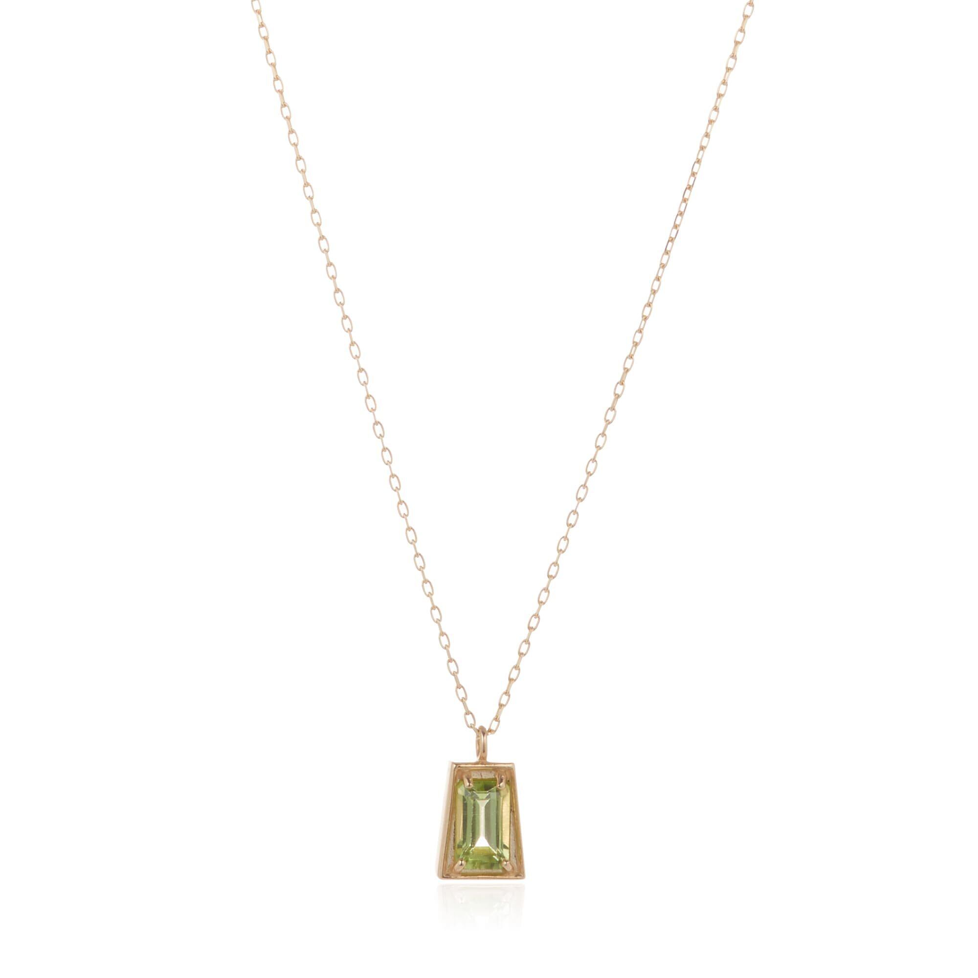 天然石ならではの透明感あふれるカラーストーンネックレス。スクエアに切り取られたペリドットが胸元で華やかに映えます。チェーンやパールネックレスとのレイヤードも楽しんで。