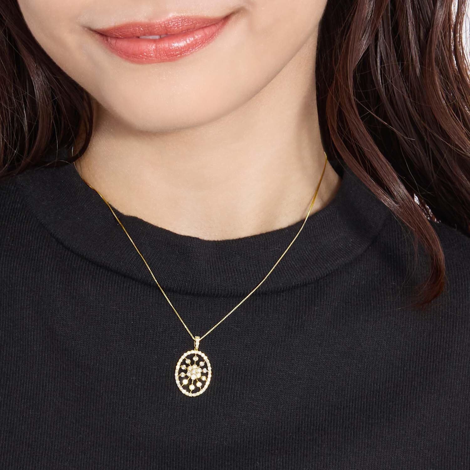 [ララクリスティー] オーバル デザイン ダイヤモンド ネックレス 1.0ct SIクラス相当 K18 18金 ゴールド lp37-0014-yg