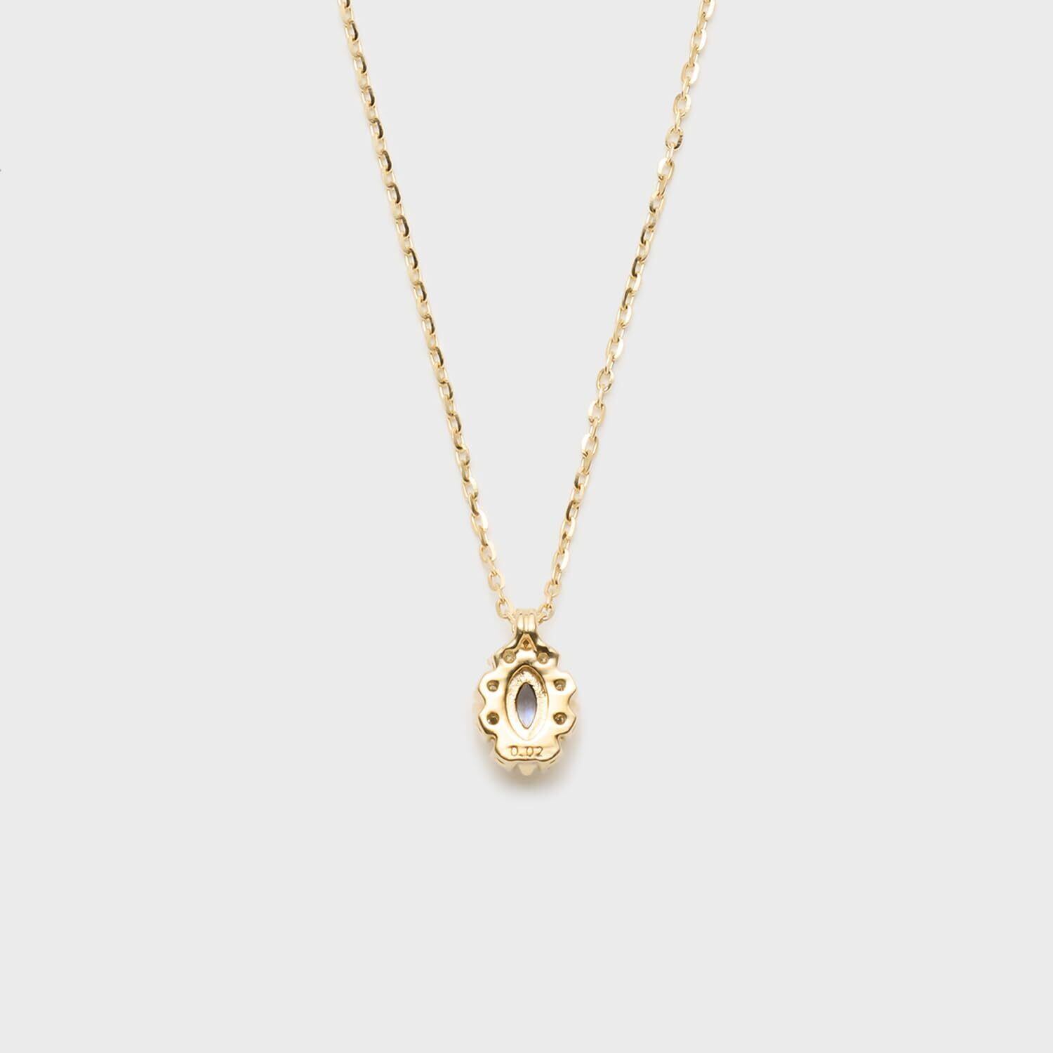 1日1日を大切に過ごすあなたへ。自分自身をたたえる勲章をモチーフにしたネックレス。小さなマーキスカットのホワイトラブラドライトの周囲を8石のダイヤモンドで取り巻きました。石座は2段腰の繊細なつくりで、アンティークジュエリーのような趣きを添えています。特別な日の記念にもおすすめしたいアイテムです。 ※天然石や天然素材を使用しているものは、サイズ・色味・風合いの違いや、若干の傷、内包物の有無などに個体差があります。予めご了承ください。※ご自身で商品をセットいただけるギフトボックスのご用意もございます。品番:30213197001 または 30213197002。