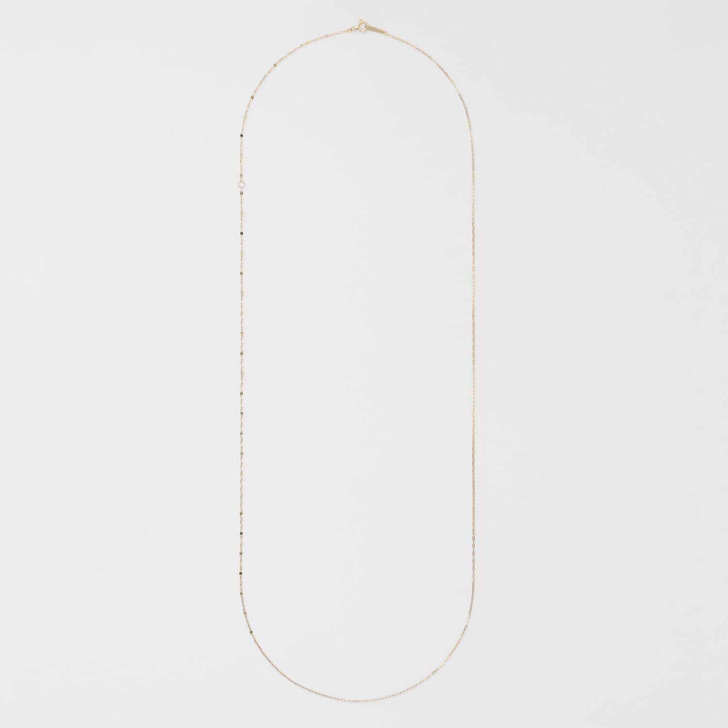 切り返しのアクセントが上品なロングチェーン。シンプルながら、しなやかな輝きが1本で着けた時も華やかな印象を与えてくれます。夏はサラッとTシャツに、冬は厚手のニットにも映える、1本は持っていたいロングチェーンです。 ※チャームは別売りです※天然石や天然素材を使用しているものは、サイズ・色味・風合いの違いや、若干の傷、内包物の有無などに個体差があります。予めご了承ください。※サイズ直しについて全国の店舗で承っております。販売証明書と納品書の確認をさせて頂きますので、ご一緒にお持ちください。※ご自身で商品をセットいただけるギフトボックスのご用意もございます。品番:10232197543。
