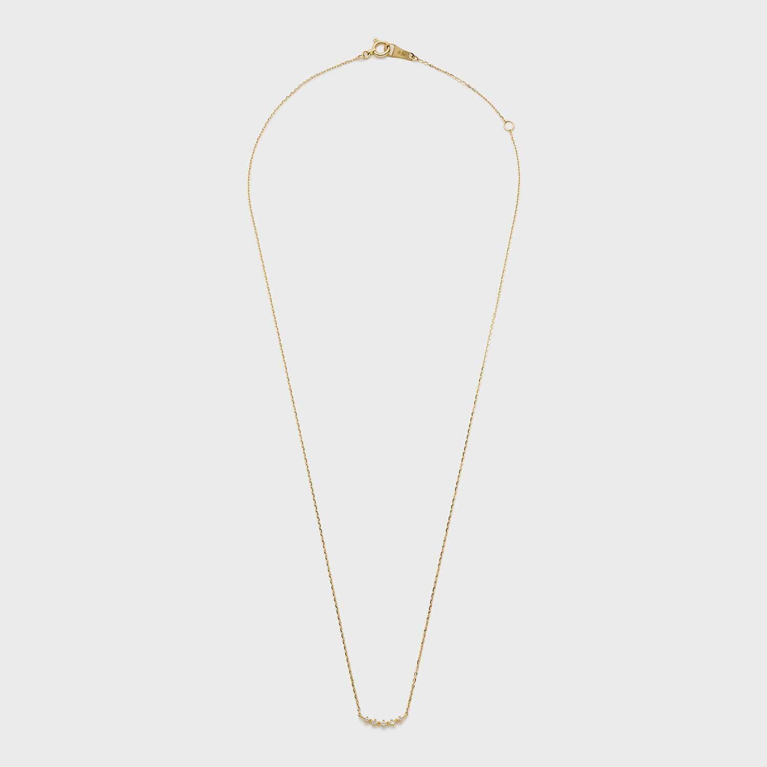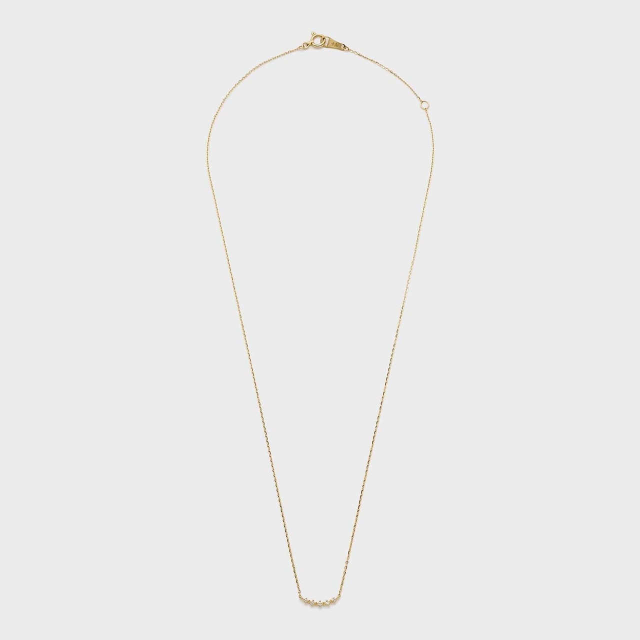 柔らかに描くアーチがデコルテを美しく魅せるバータイプネックレス。三日月のアーチに沿ってダイヤモンドをセッティングし、デイリー使いしやすいシンプルな表情に仕立てました。デコルテラインに溶け込みながら、顔周りを上品に彩ります。※天然石や天然素材を使用しているものは、サイズ・色味・風合いの違いや、若干の傷、内包物の有無などに個体差があります。予めご了承ください。