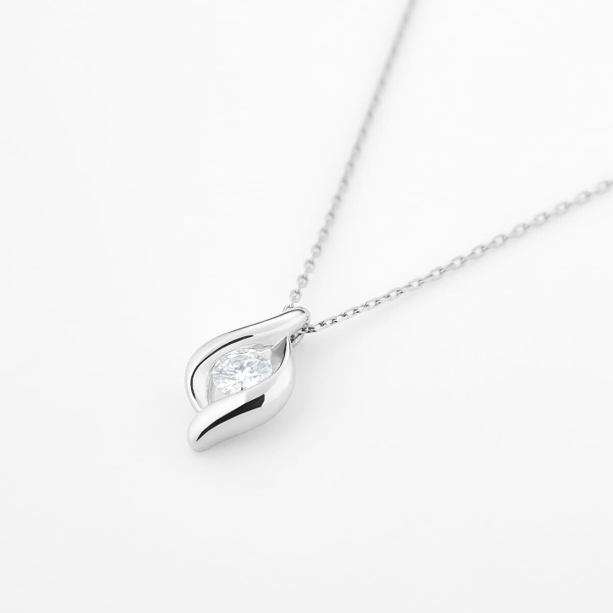 虹色の光りと優れた耐久性をもつ「モアサナイト」。挟み込むようにセッティングして石の輝きを引き立てたネックレスです。プラチナコーティングの高級感ある色味がモアサナイトの虹色の輝きを一層引き立てます。また、ボリューム感たっぷりのデザインがとてもリッチでギフトとしてもおすすめです。