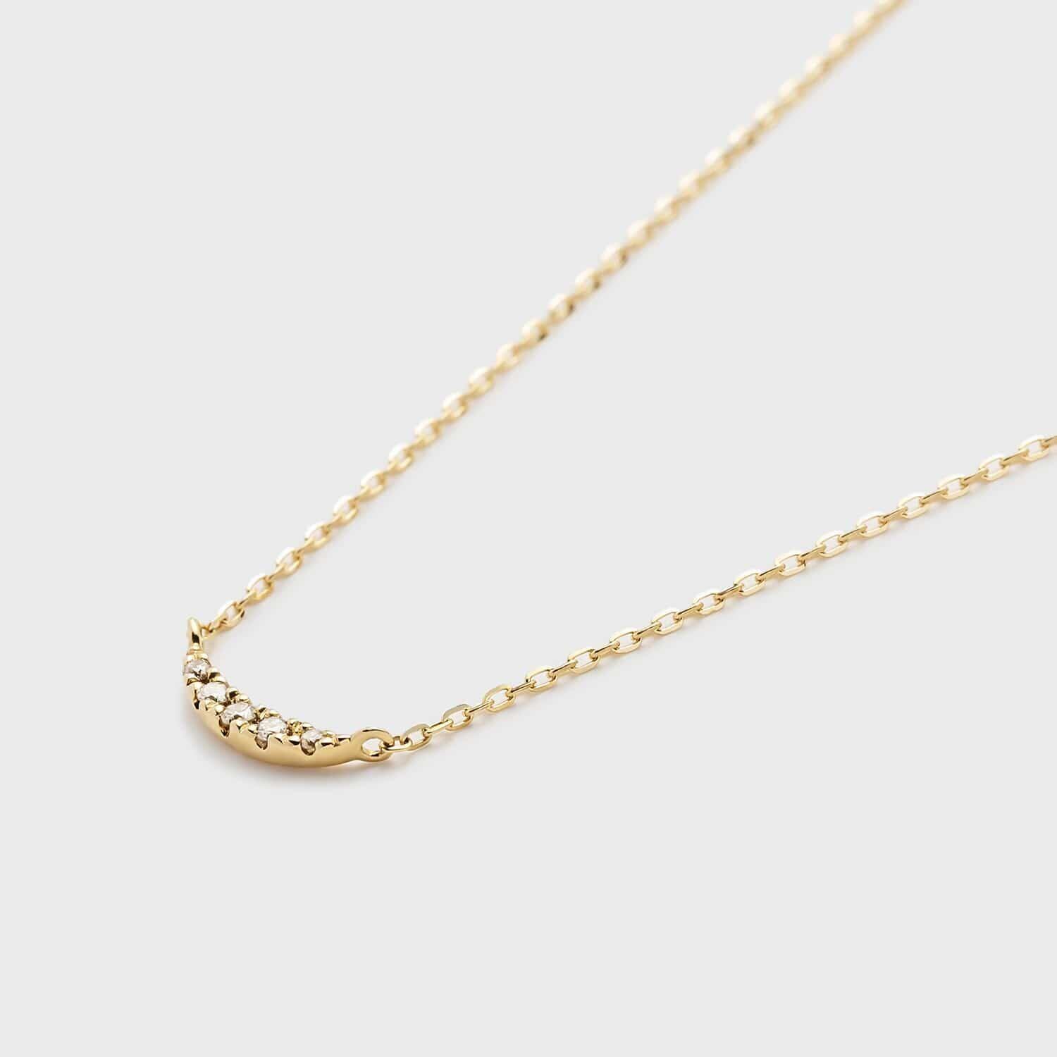 柔らかに描くアーチがデコルテを美しく魅せるバータイプネックレス。ダイヤモンドが浮き立つようにアクセントを加え、印象的なシルエットに仕上げました。デコルテラインに溶け込みながら、顔周りを上品に彩ります。 ※天然石や天然素材を使用しているものは、サイズ・色味・風合いの違いや、若干の傷、内包物の有無などに個体差があります。予めご了承ください。