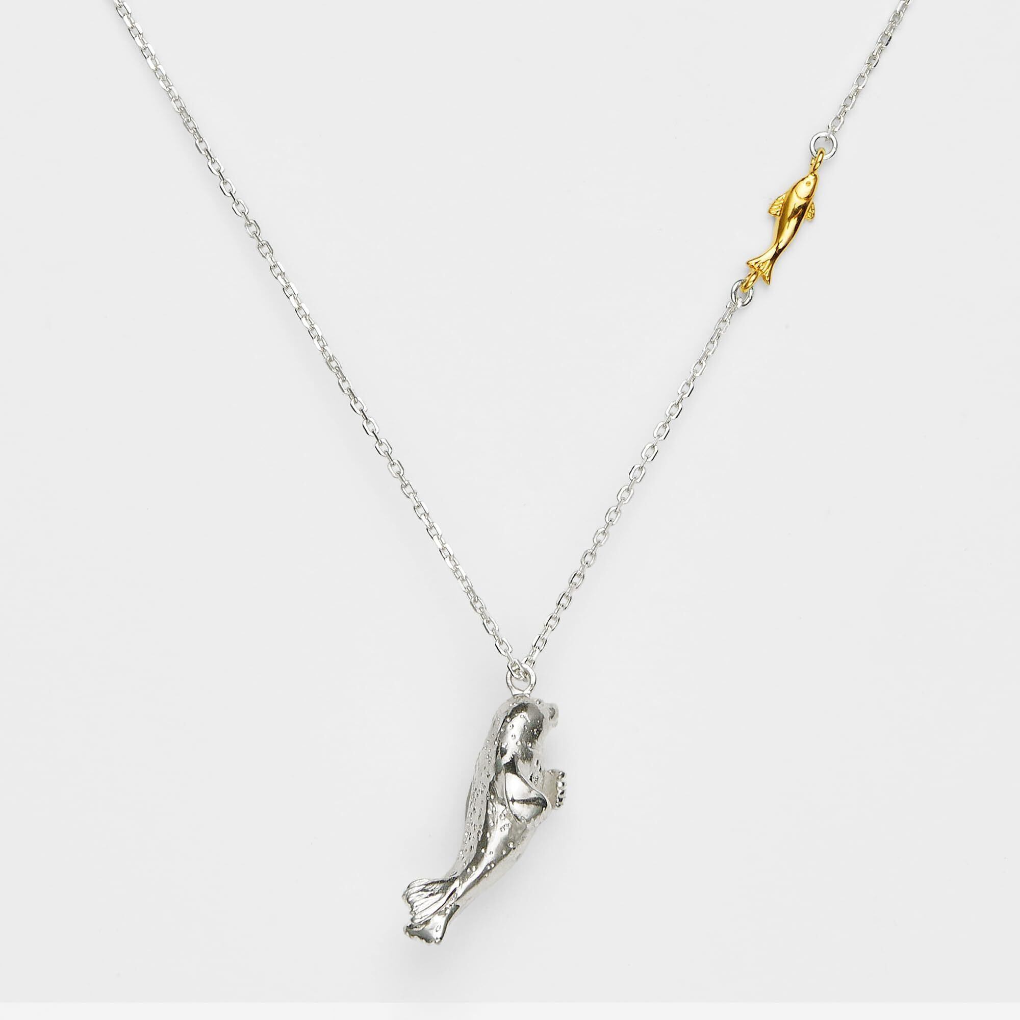 好奇心いっぱいに、魚を追いかけながら気持ちよく泳ぐ姿をネックレスで表現しました。