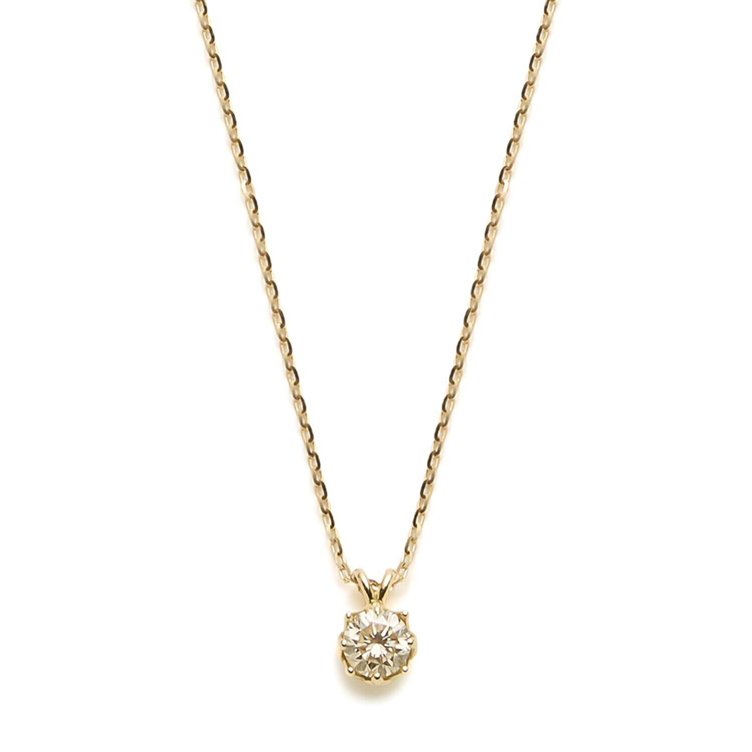 Always wear your invisible crown.「誰もがいつも目には見えないクラウンを頭に載せている。下を向いたら落ちてしまうから、あなたらしく前を向いて。」4本爪と飾り爪を足した8本の爪で細かくダイヤモンドを取り巻いたシンプルなデザインの中に、小さな物語を込めたひと粒ダイヤモンドネックレス。ダイヤモンドを優しく包み込む石座は、伝統的なロイヤルクラウンがモチーフ。正面からは見えない隠れデザインは、自分だけの秘密のお守りジュエリー。クラウンの透かし模様には「愛情」「幸福」の象徴とされるハートモチーフを忍ばせて、ダイヤモンドの宝石言葉「永遠の絆」とともに「小さな幸せが続きますように」という想いを込めています。どこから見ても美しい繊細な細工が魅力のネックレスです。ダイヤモンドのサイズは、0.05ctから0.15ctまでの3サイズ。素材はK18とK10からお選びいただけます。 ※天然石や天然素材を使用しているものは、サイズ・色味・風合いの違いや、若干の傷、内包物の有無などに個体差があります。予めご了承ください。