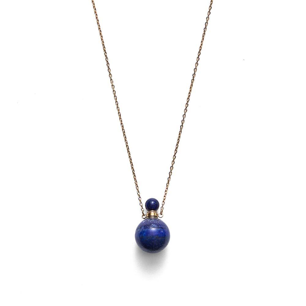 ボトル型の大きめな天然石が目を惹くネックレス。 天然石は上部の蓋を回して外すと中に香水やオイルを入れることができます。 いつでもお気に入りの匂いを持ち歩きたいという方におすすめ。(※スポイトは付属しません)