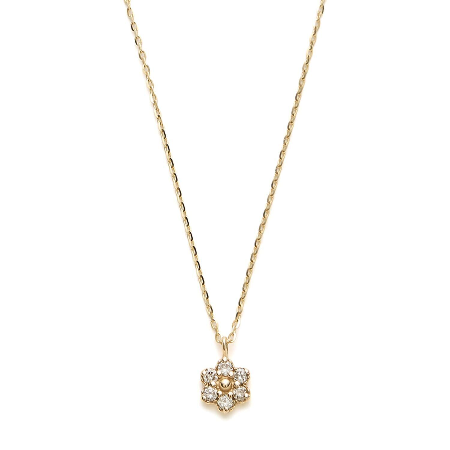 【Tiny Motif】 思わず覗き込みたくなるようなミニチュアの世界。 中央の飾り玉の周りを6石のダイヤモンドで取り巻いたフラワークラスターモチーフ。 誰もが一度は憧れるその伝統的なデザインは、愛を伝えるときに贈られるロマンティックなモチーフでもあります。 古くからから愛される普遍的なモチーフを小さくアレンジすることで、今の気分にフィットする新鮮な魅力が生まれました。 ダイヤモンド周りの地金の縁取りは波打つ模様になっており、小さなモチーフの中に施した繊細な作り込みがこだわりです。 人気のデザインがリニューアル。 裏面のデザインを変更し、より軽やかな着け心地にアップデートしています。 ※天然石や天然素材を使用しているものは、サイズ・色味・風合いの違いや、若干の傷、内包物の有無などに個体差があります。予めご了承ください。