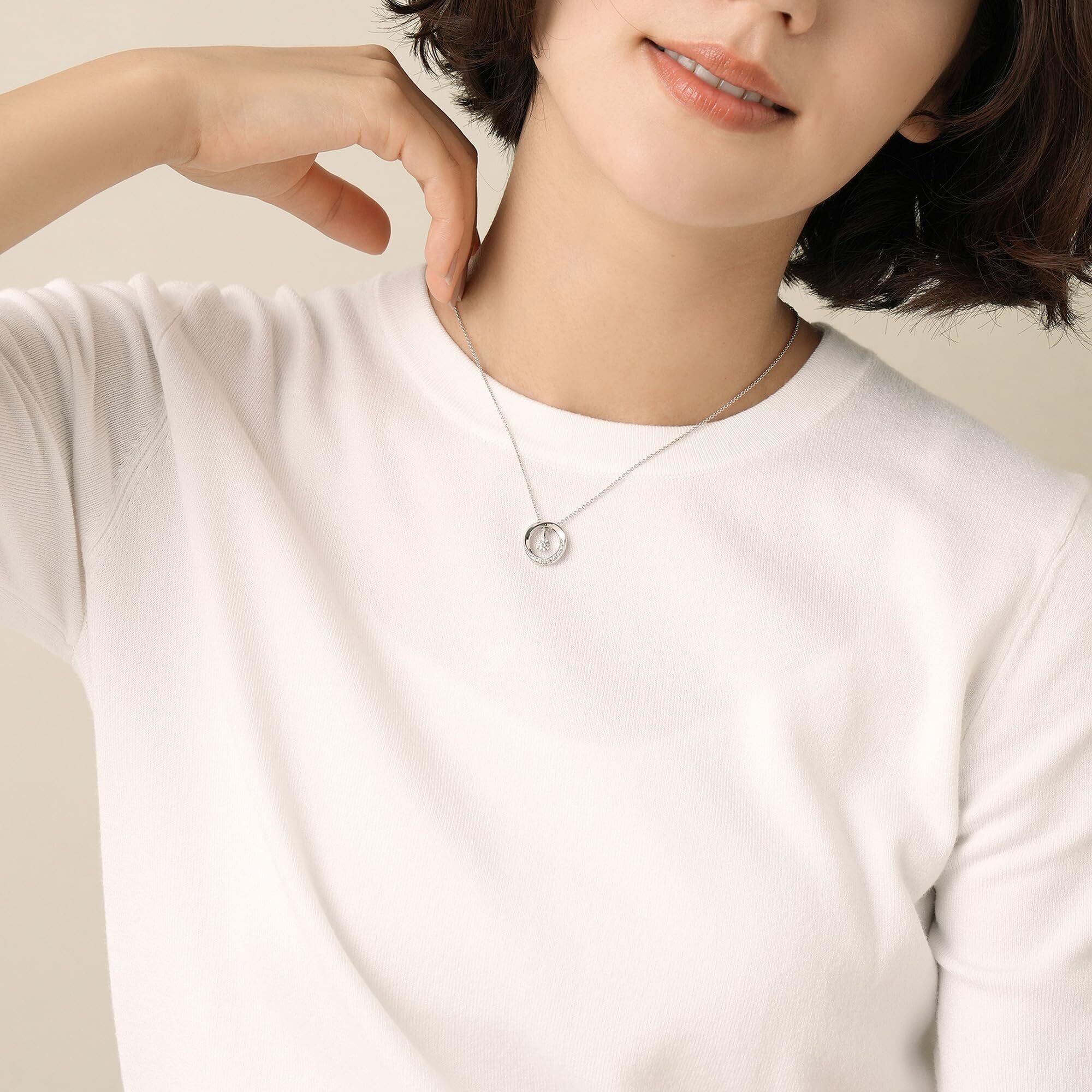 サークルのパーツと中央にセットされた大きめの一粒石のキュービックジルコニアは、取り外してそれぞれシンプルなネックレスとしてもお着けいただけるチェンジャブルデザイン。