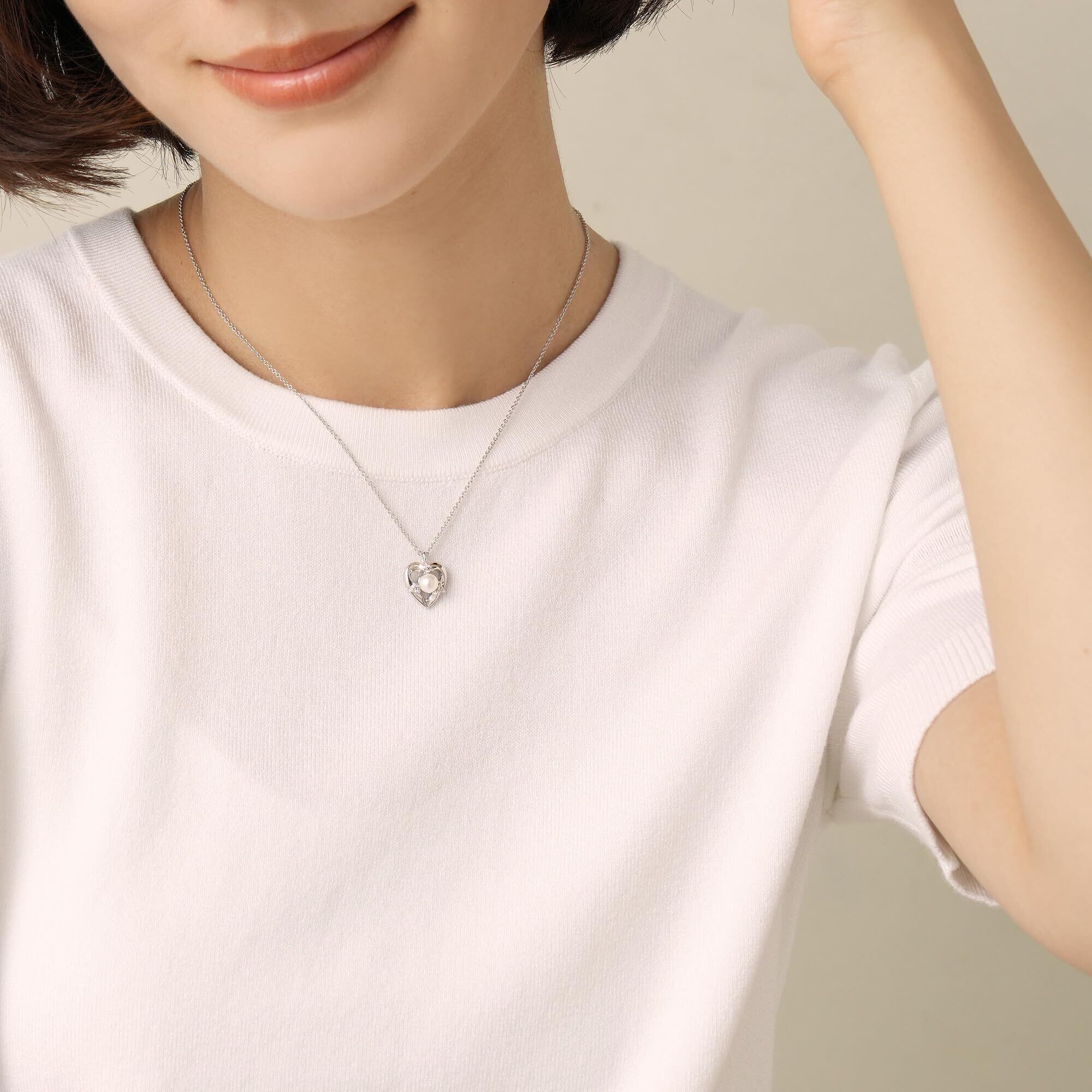 なめらかなエッジで描くエレガントなハートシェイプはすっきりとして甘くなりすぎず胸元を上品に彩ります。