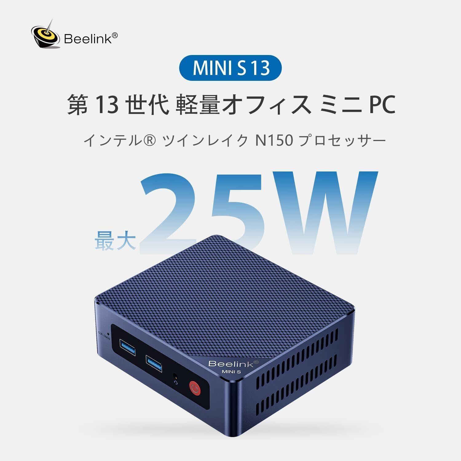 Beelink Mini S13 ミニ PC 、N150 (最大3.6GHz) 4コア/4スレッド ミニ コンピューター、16GB RAM 500GB SSD ビジネス PC、デュアル HDMI/WiFi 6/BT 5.2/RJ45/WOL