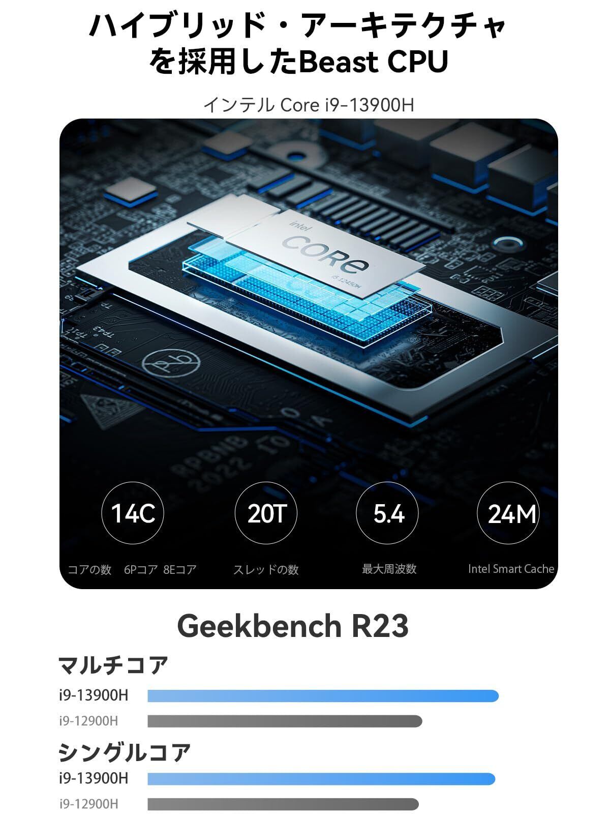 【Intel 第 13 世代 Core i9 CPU搭載】: ミニデスクトップ コンピューター MS-01 S1390 には、ハイエンドの Intel 第 13 世代 Core i9 13900H プロセッサーが搭載されています。14C/20T、24MB キャッシュ、最大 5.4GHz、最大周波数 1.5GHz および 1.45GHz の統合 Intel Iris Xe グラフィックスを搭載し、ゲームや仕事に強力なパフォーマンスと究極のスムーズな体験をもたらします。